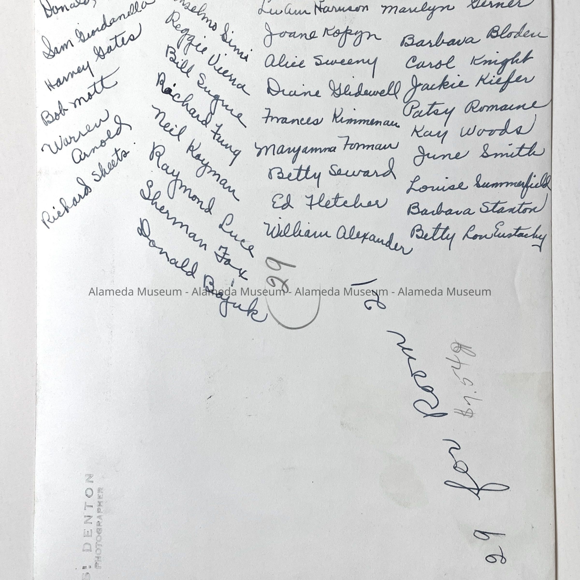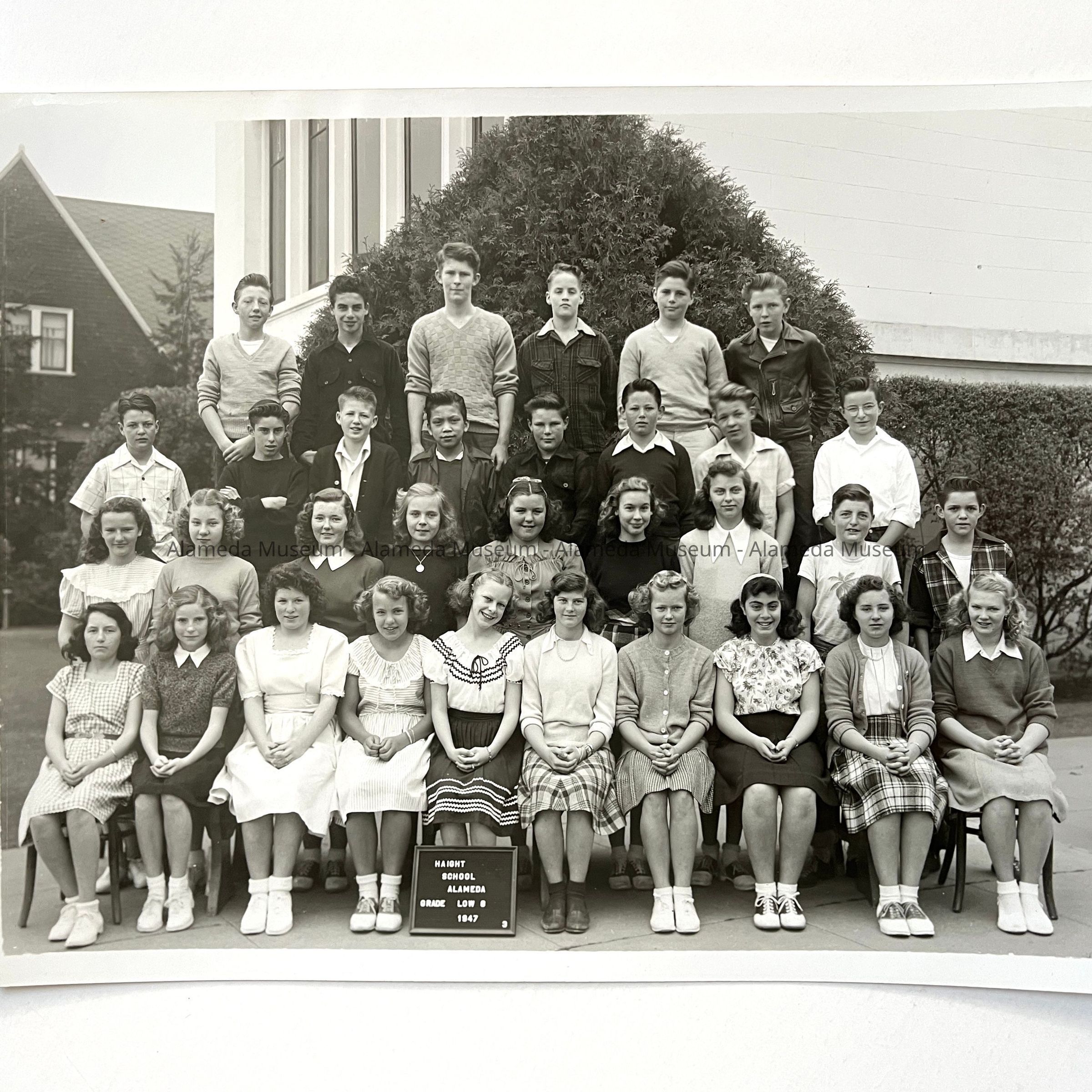 PHOTOGRAPH OF THE LOW EIGHTH GRADE, HAIGHT SCHOOL, DATED 1947. ON THE REVERSE SIDE IS A LIST OF NAMES OF STUDENTS PICTURED. MS CHEVAL WAS A TEACHER WITH THE ALAMEDA UNIFIED SCHOOL DISTRICT.