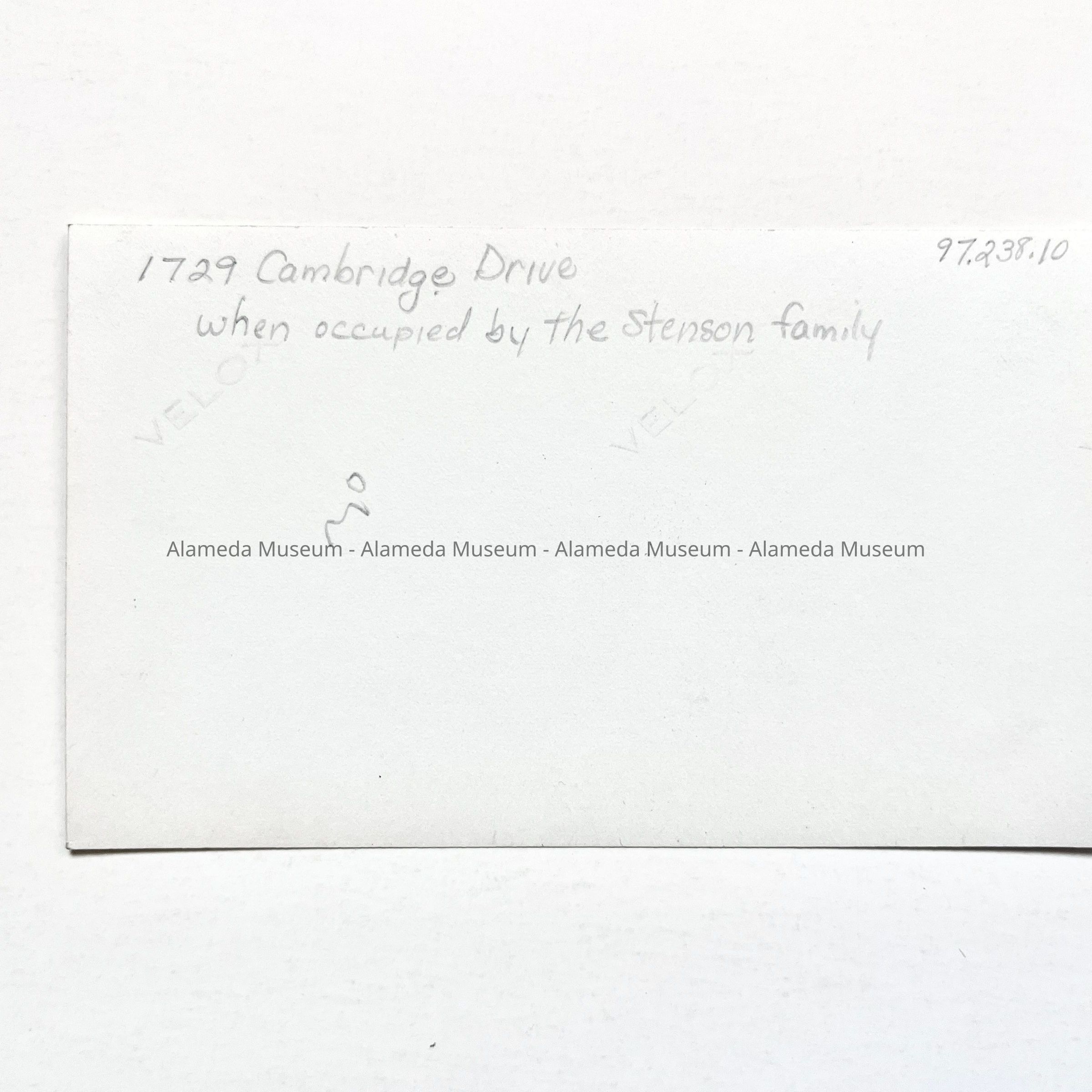 PHOTOGRAPH OF THE MAIN FACADE OF 1729 CAMBRIDGE DRIVE, ALAMEDA, WHEN IT WAS OCCUPIED BY THE STENSON FAMILY.