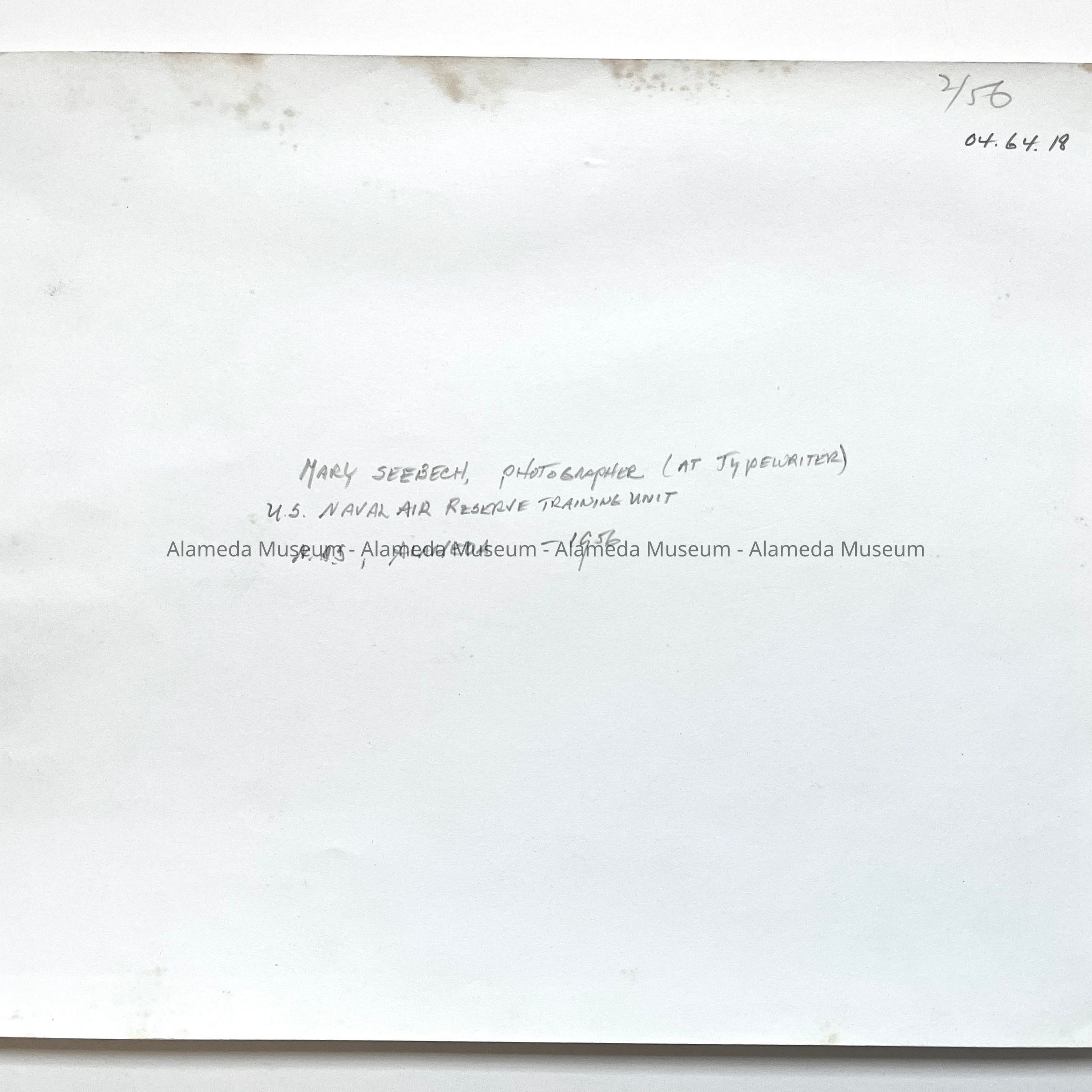 Photo of Mary Seebach, photographer U.S. Naval Air Reserve Training Unit, 1956Entry/Object ID