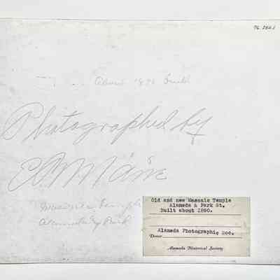 Description: Black/white matté finish photograph, unmounted. Photographer: E. B. Mane (?) of the Alameda Photographic Society. Typed description label is affixed to the bottom margin. Size: L-8 x W-10 in.