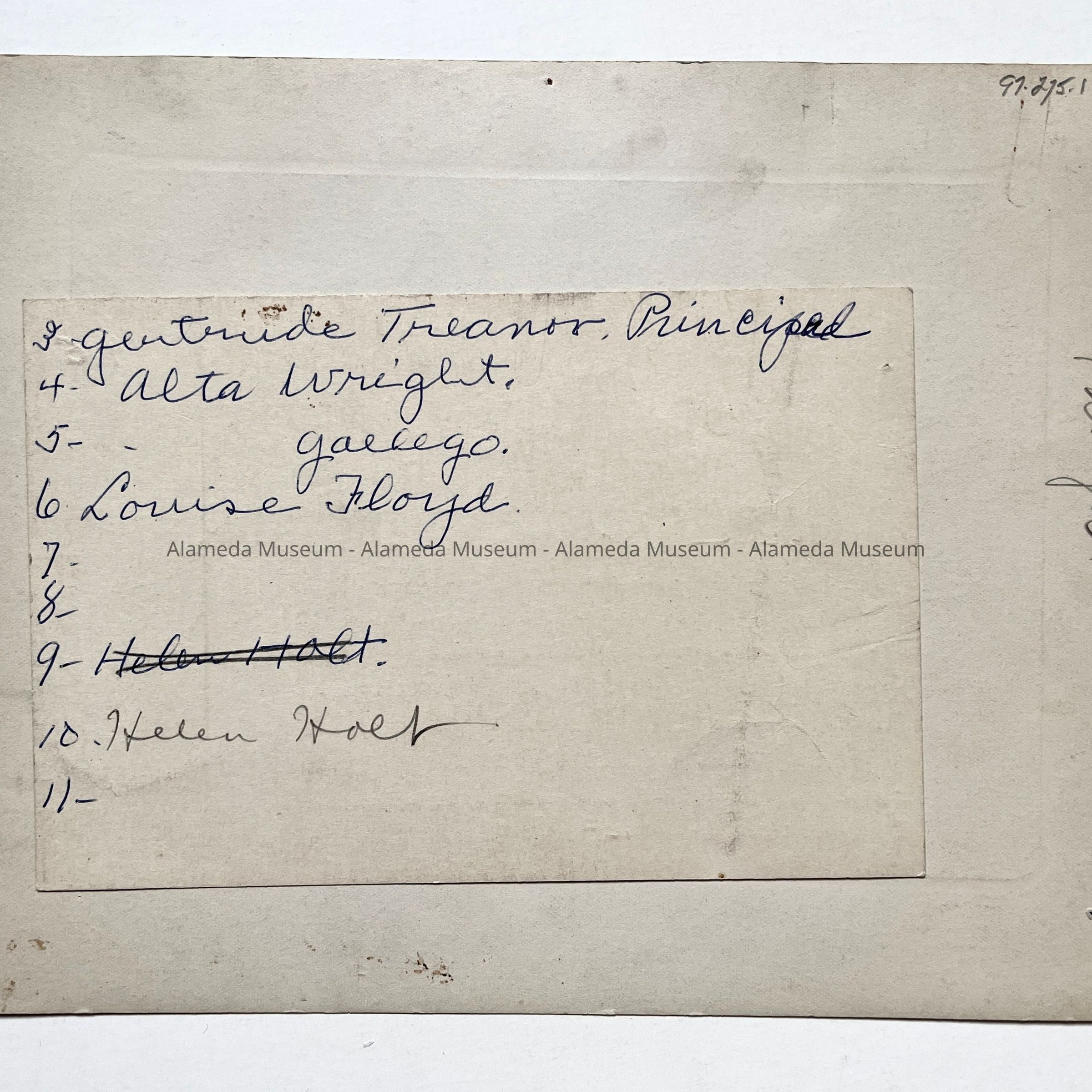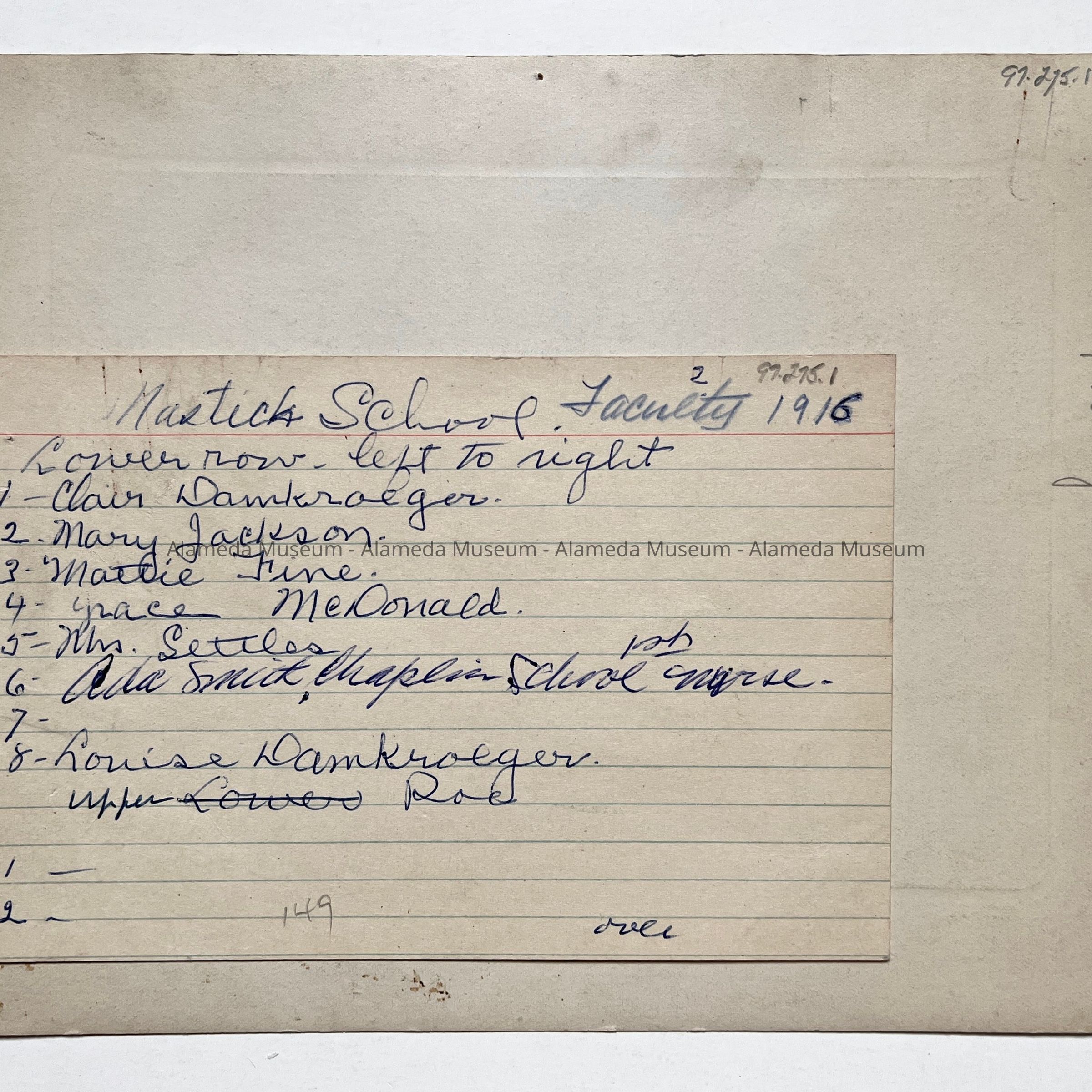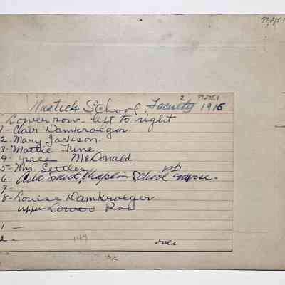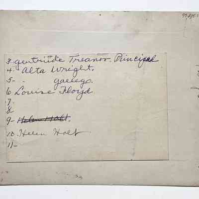 History of Object: Mastick School faculty, most of whom are identified on a card attached to the verso.