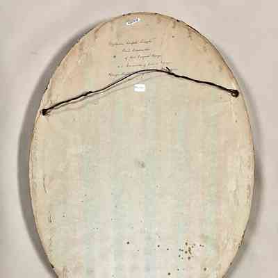 BLACK-AND-WHITE PHOTOGRAPH, ACCENTUATED IN CHARCOAL IN A GILT FINISH, OVAL-SHAPED FRAME WITH CONVEX GLASS.
