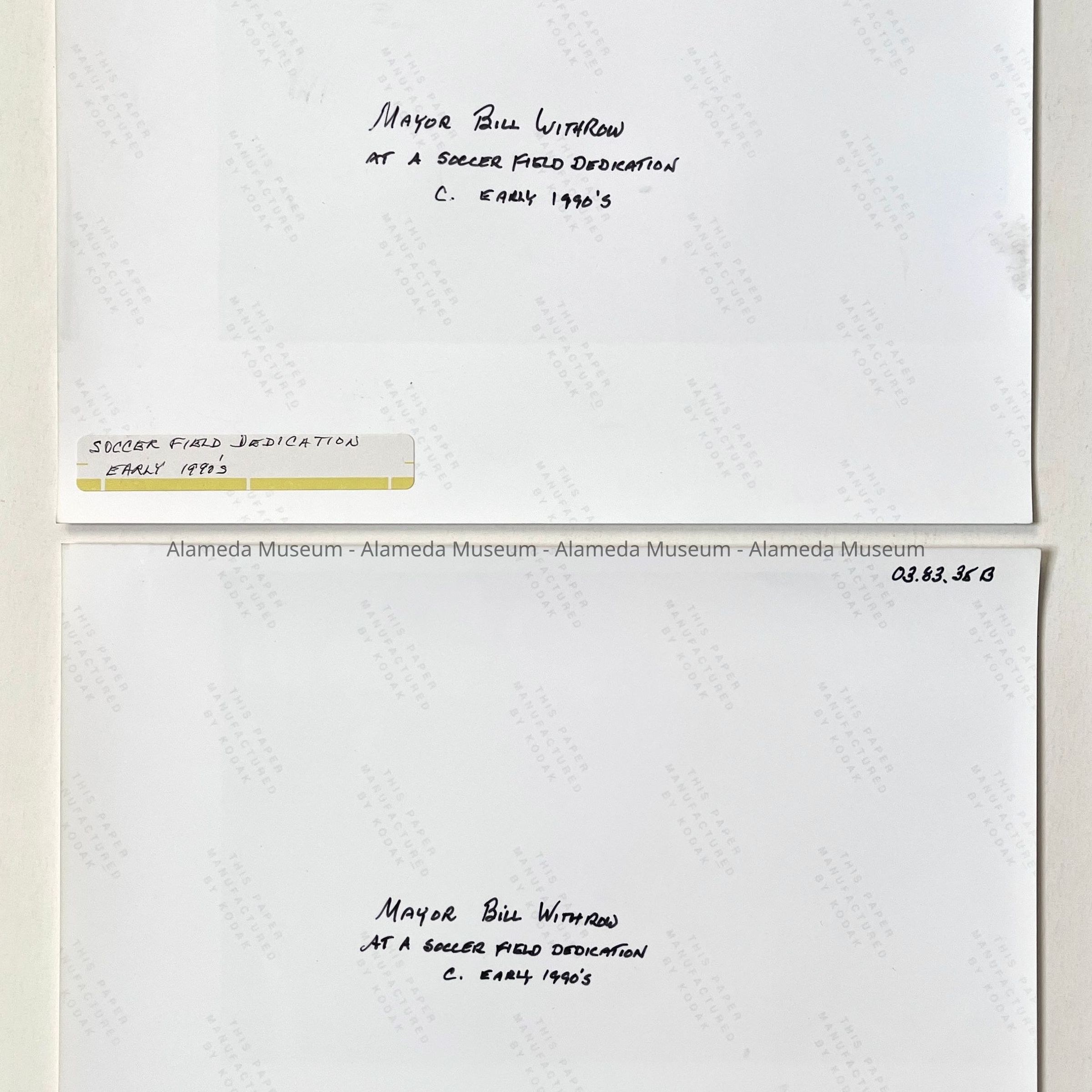 Photo of Mayor Bill Withrow at dedication of a soccer field, c. early 1990sEntry/Object ID