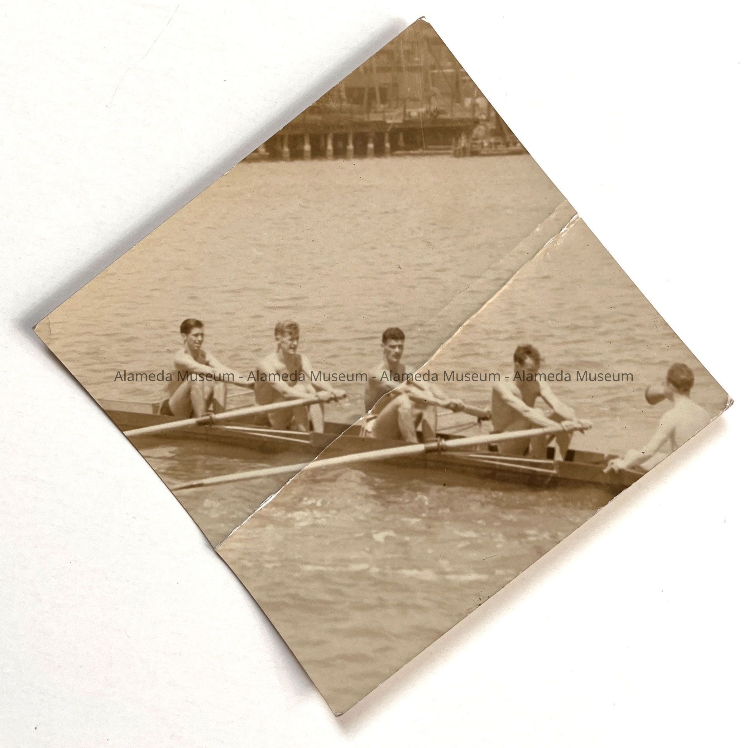 Photo of Members of Alameda Boating Club in an oar racing boat, 1930sEntry/Object ID