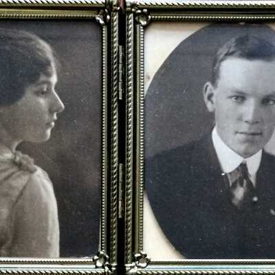 Description: Modern frame containing two sepia tinted photographic portraits.