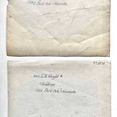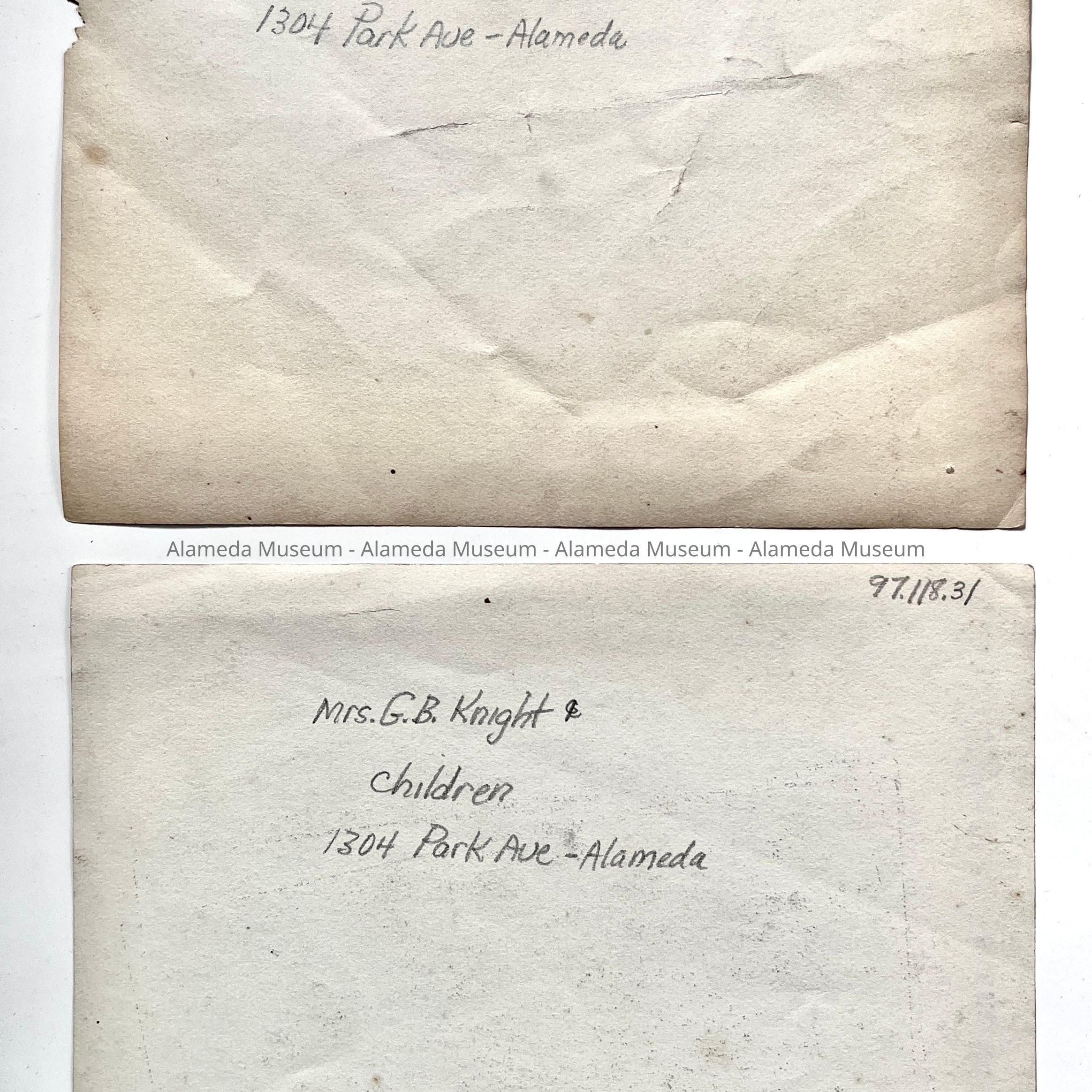 PHOTOGRAPH OF MRS G B KNIGHT AND CHILDREN, TAKEN IN THE INTERIOR OF 1304 PARK AVENUE, ALAMEDA, CALIFORNIA.