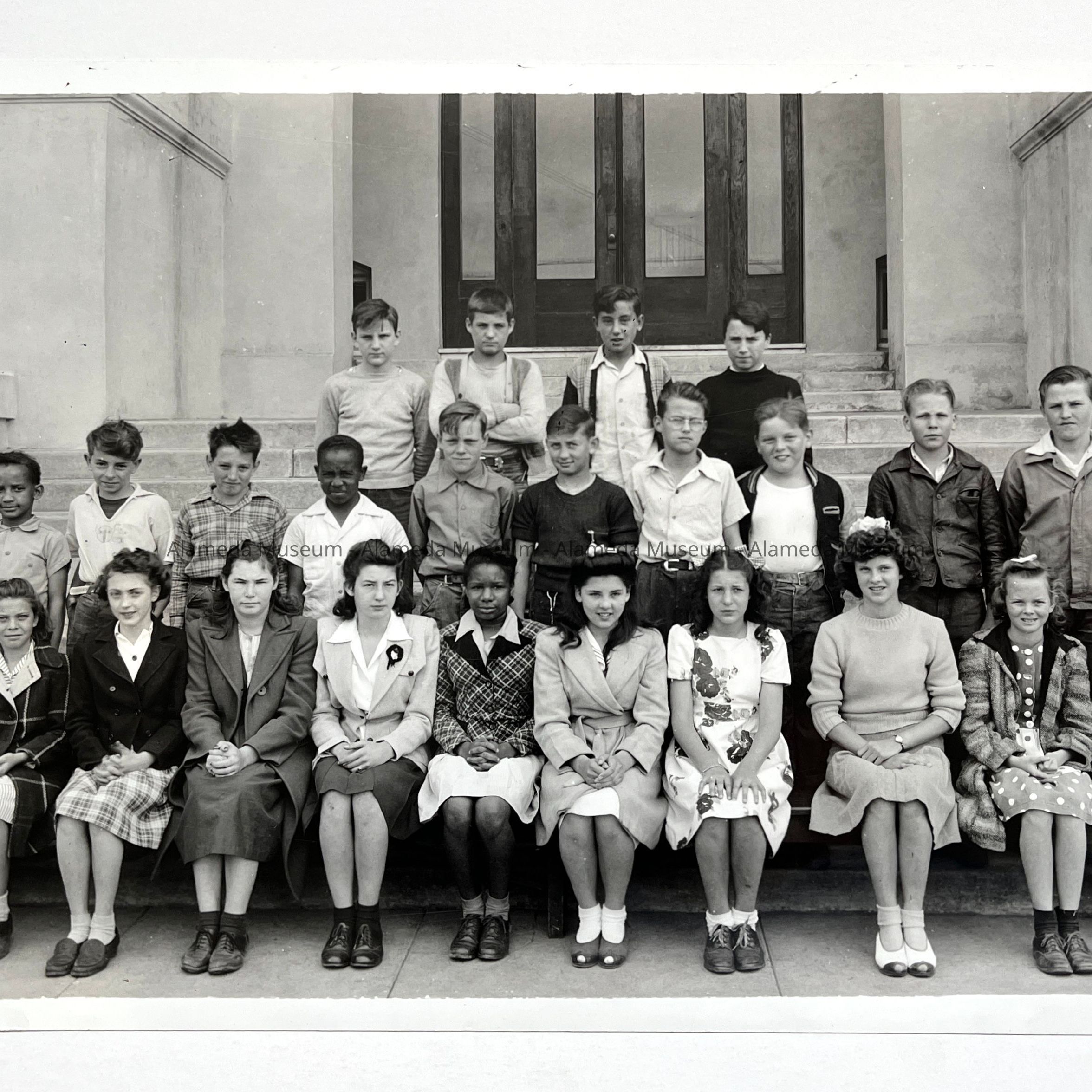 PHOTO OF MS MCCLOSKY, TEACHER, LOW SEVENTH-GRADE CLASS, WASHINGTON SCHOOL, SPRING OF 1944.