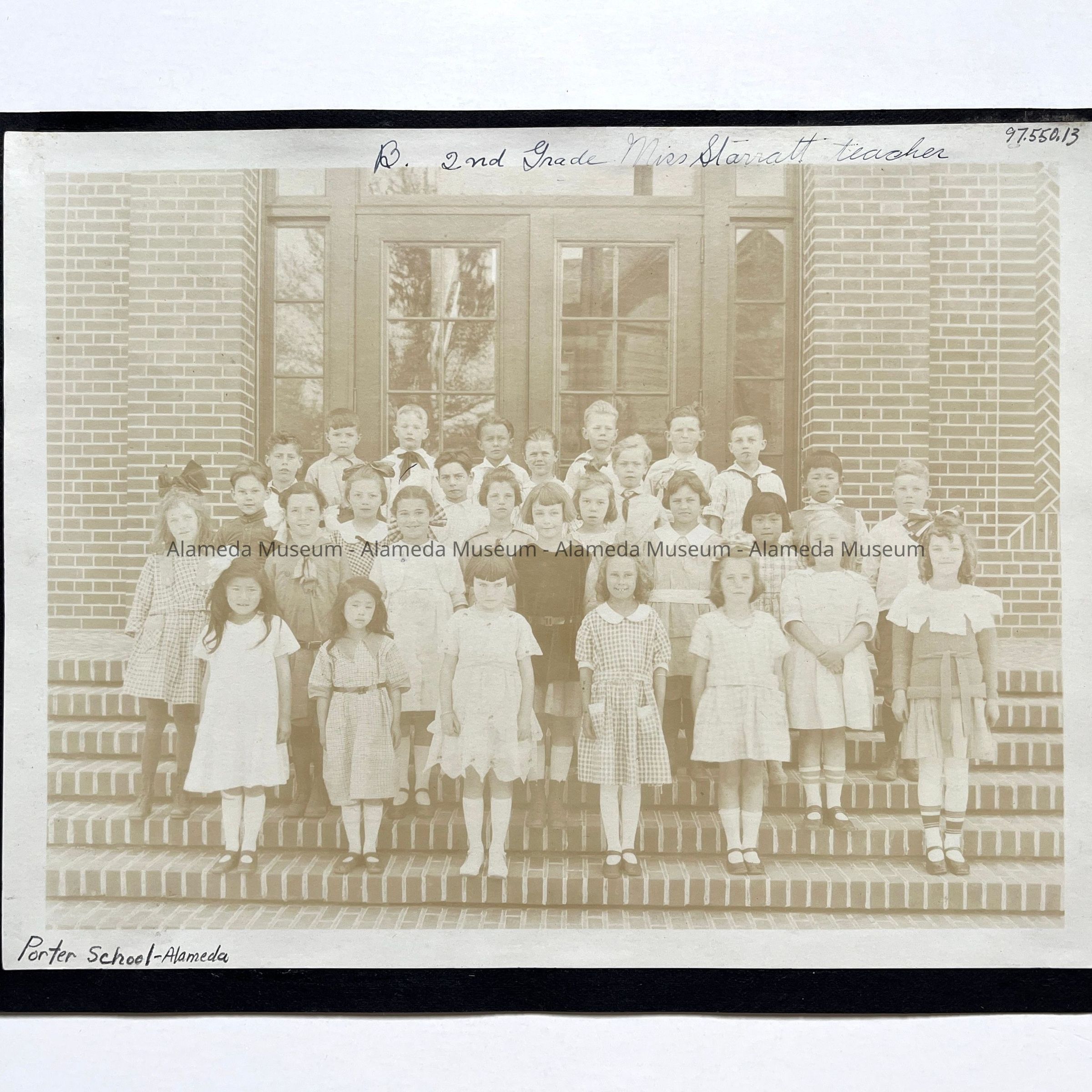 HISTORY OF OBJECT: PHOTOGRAPH OF "B SECOND-GRADE, MS STARRATT, TEACHER", PORTER SCHOOL, ALAMEDA, CA.