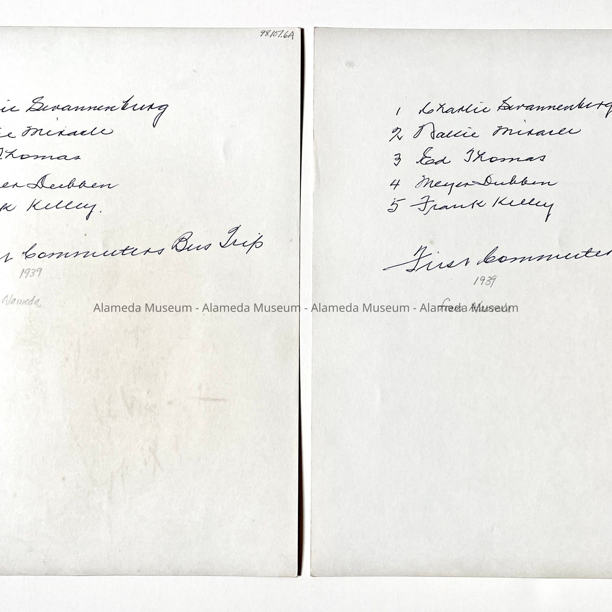 PHOTOGRAPH OF MUSICIANS AT THE FIRST COMMUTER BUS TRIP, KEY SYSTEM BUS COMPANY, 1939. THE LATE WALLACE D MIRACLE WAS A MEMBER OF THE BAND.
