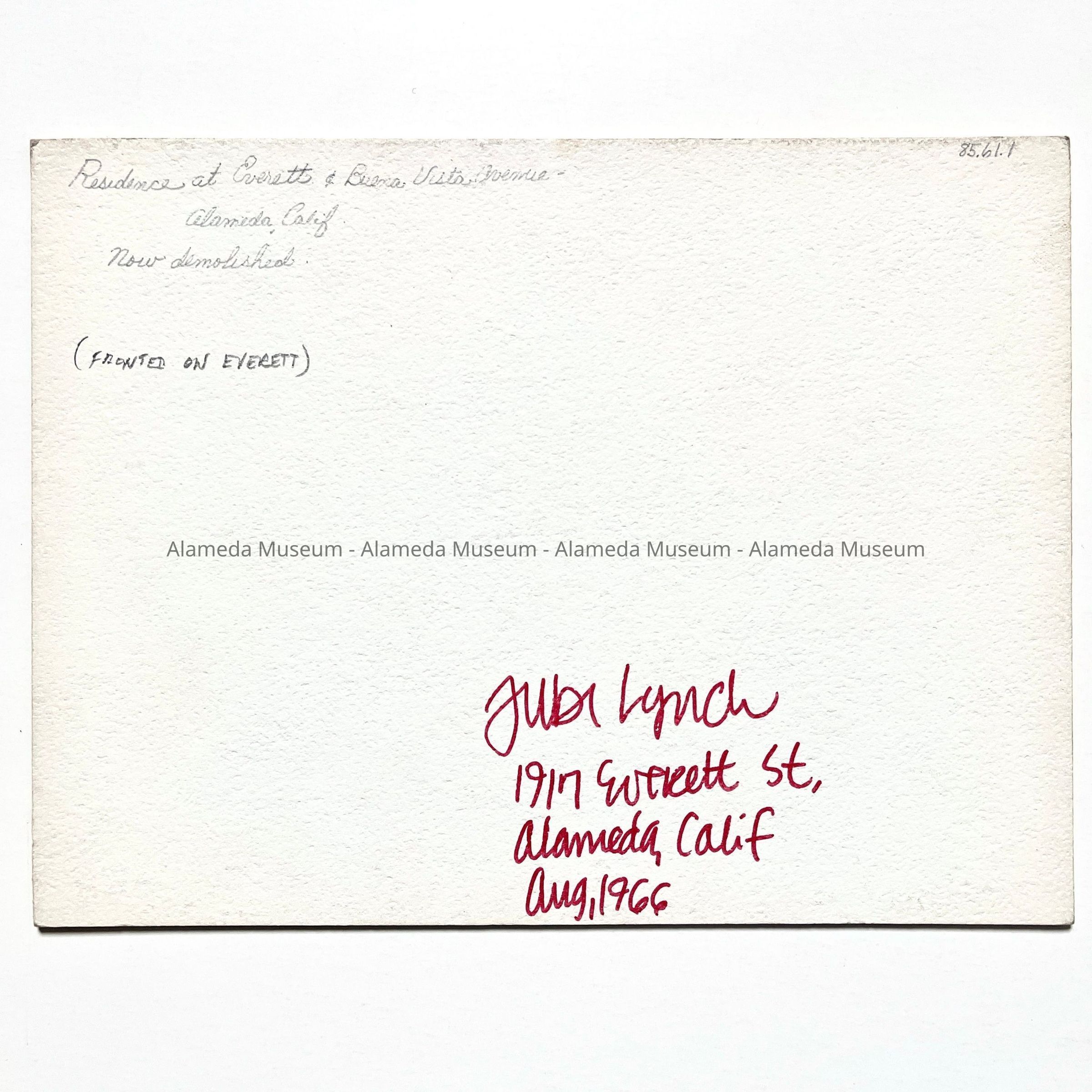 Photo of now demolised cottage Everett Street and Buena Vista Ave., 1966Entry/Object ID