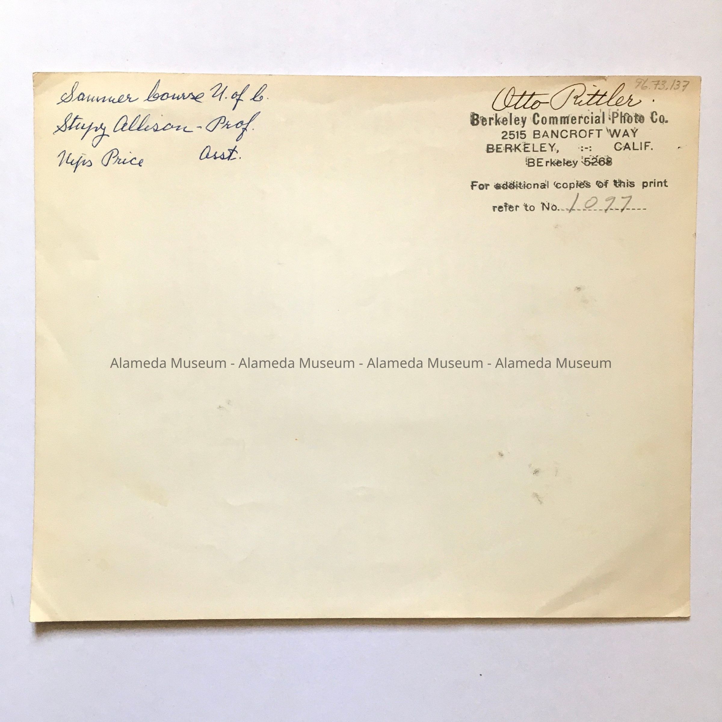 A BLACK-AND-WHITE PHOTO, SIGNED ON THE REVERSE SIDE, "BERKELEY COMMERCIAL PHOTO CO."