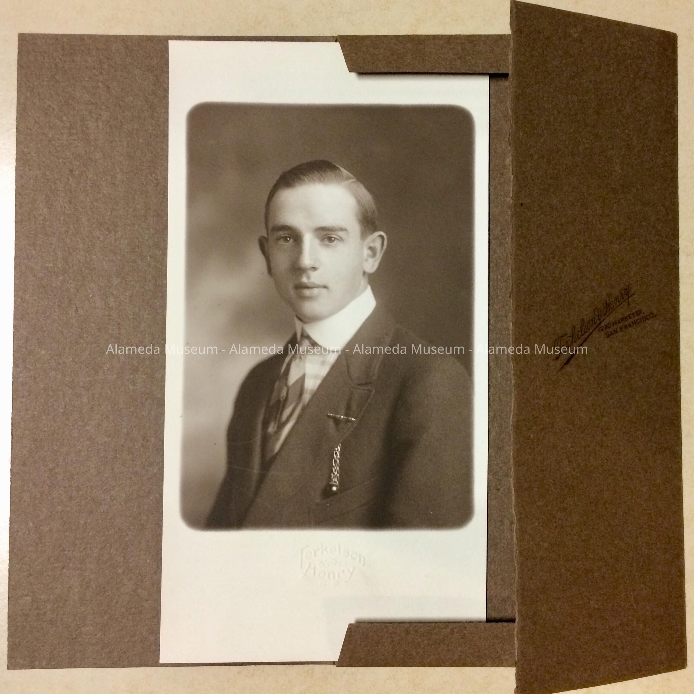 Description: A sepia-toned photograph within a studio folder. The photographer was Terkelson & Henry, San Francisco.
