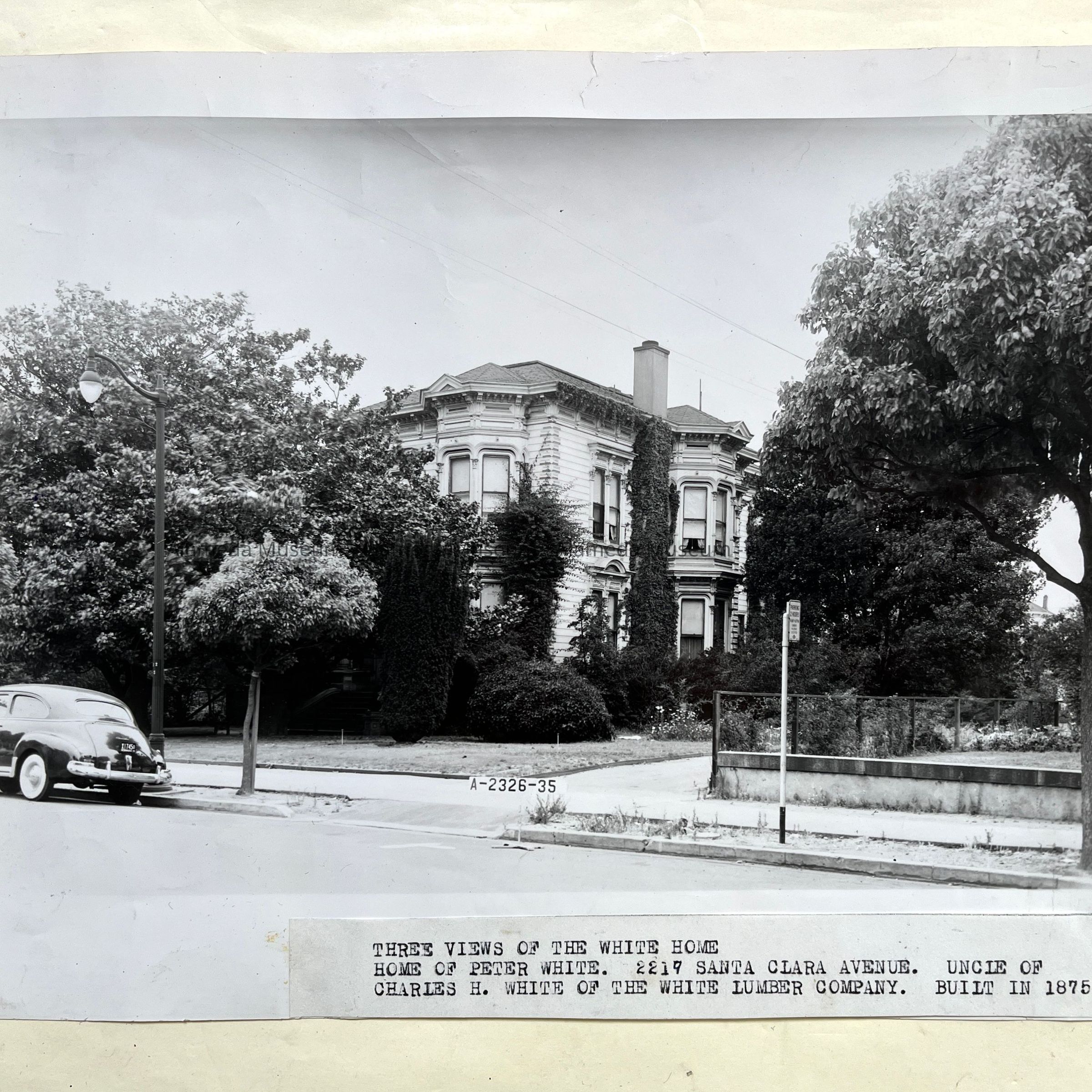 History: Photograph depicting the Peter White Mansion at 2217 Santa Clara, shortly before its demolition.