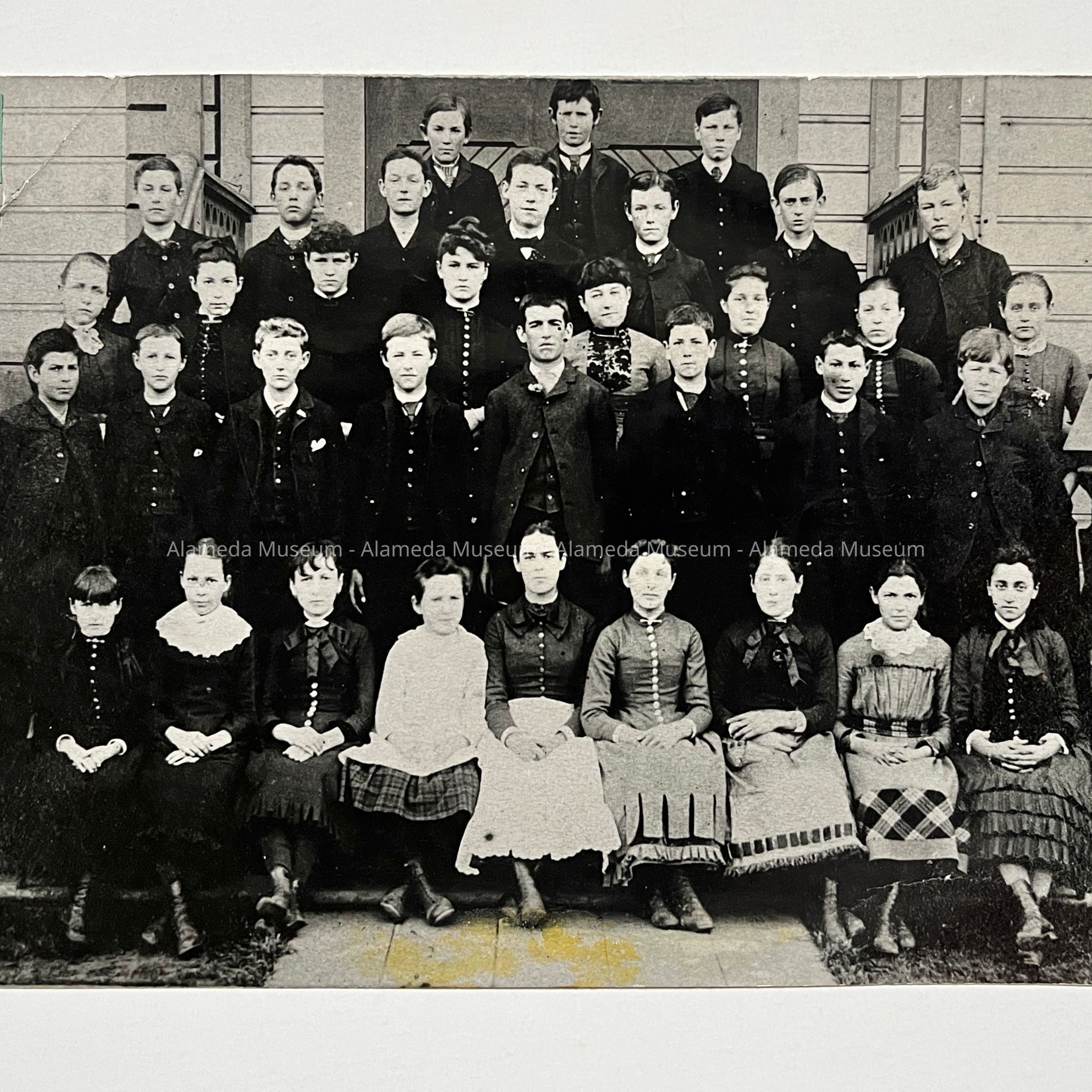 History of Object: A Porter School class photo, ca. 1885, posed on the front steps. The grade and student names are unknown.