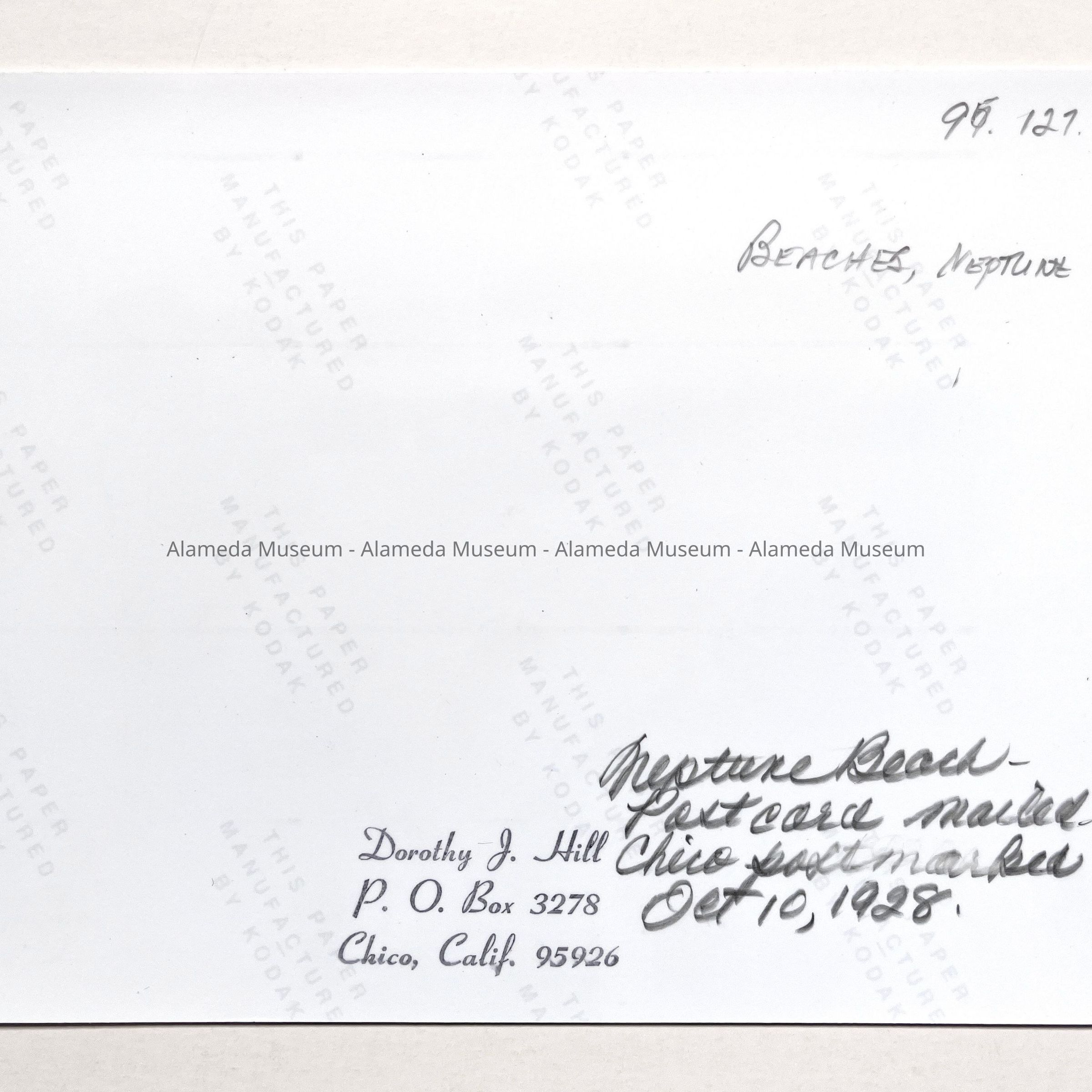 History of Object: View of the Neptune Beach swimming pool (or "tank", as identified on the postcard).
