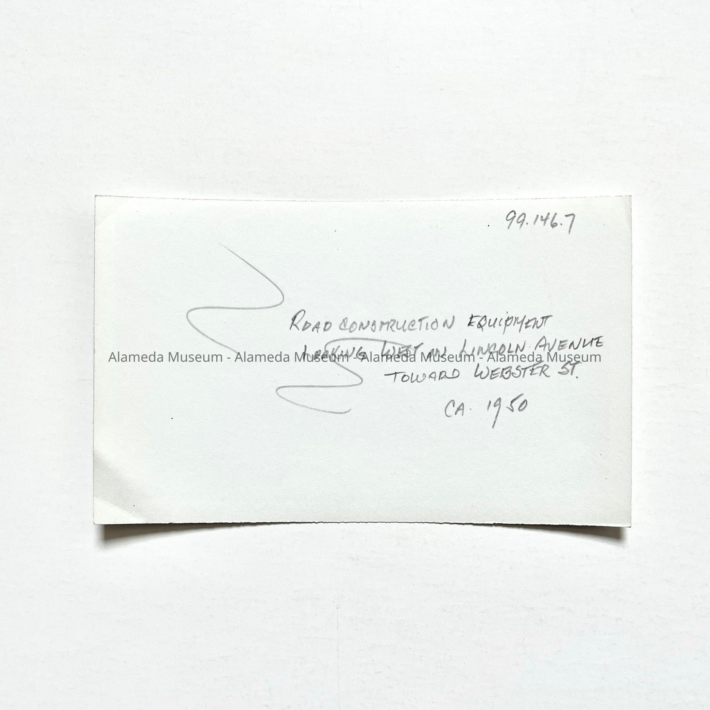 History of Object: Road construction equipment at work on Lincoln Avenue looking west toward Webster Street.