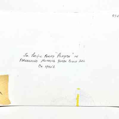 History of Object: Southern Pacific ferry "Alameda" steaming toward Yerba Buena Island.
