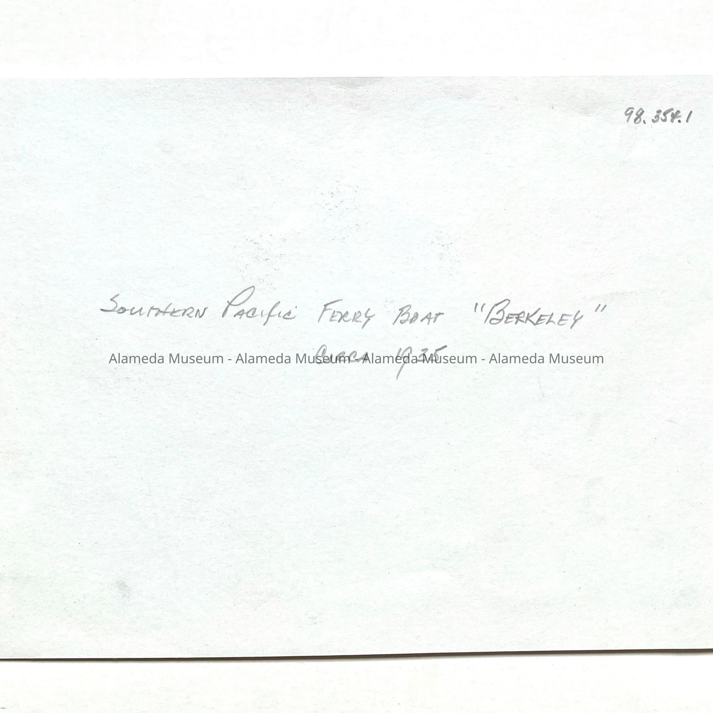 Photo of S. P. Ferry boat 'Berkeley' approaching the Alameda Mole, 1935Entry/Object ID