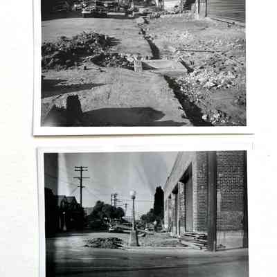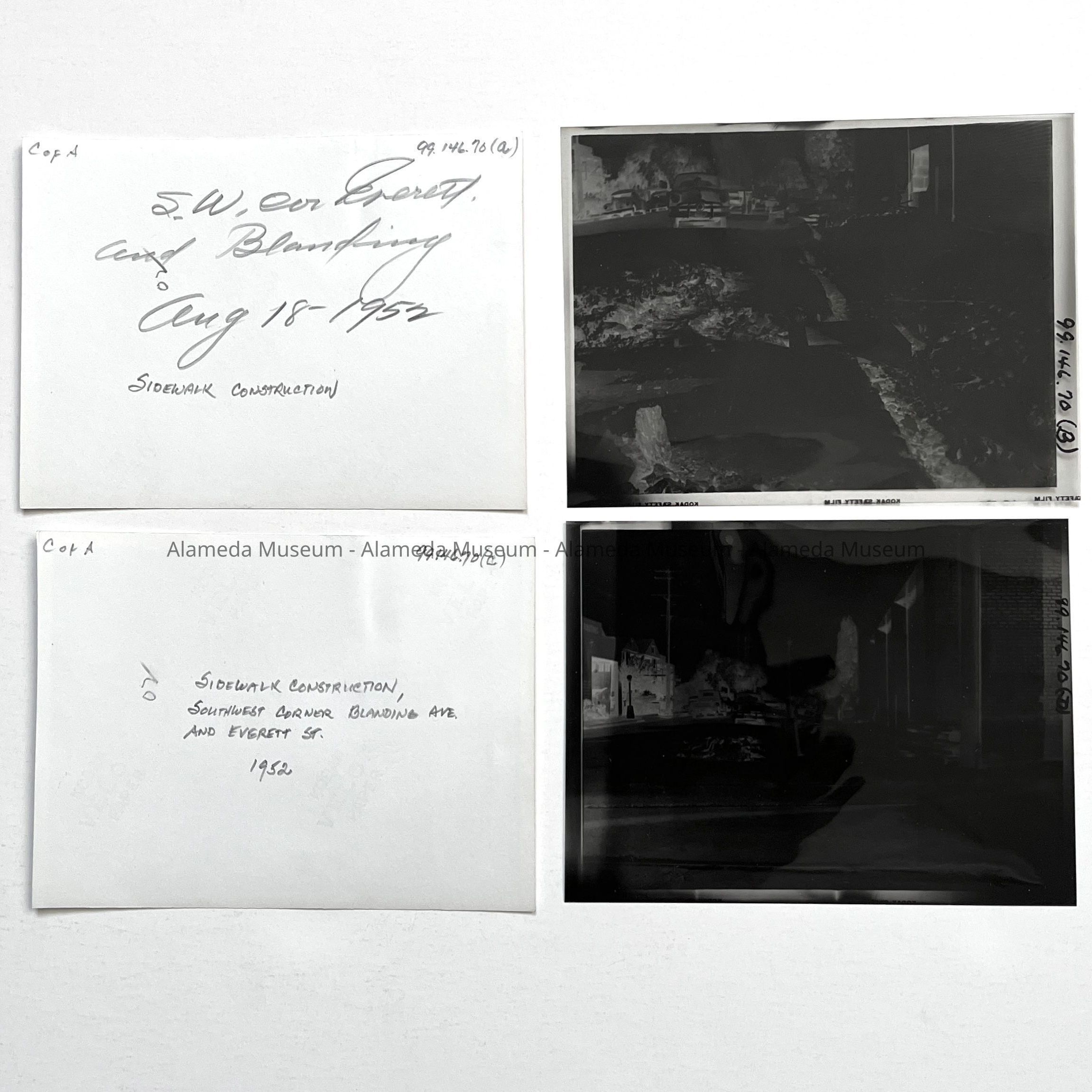 Photo of sidewalk construction, SE corner Everett and Blanding Way, 1952Entry/Object ID