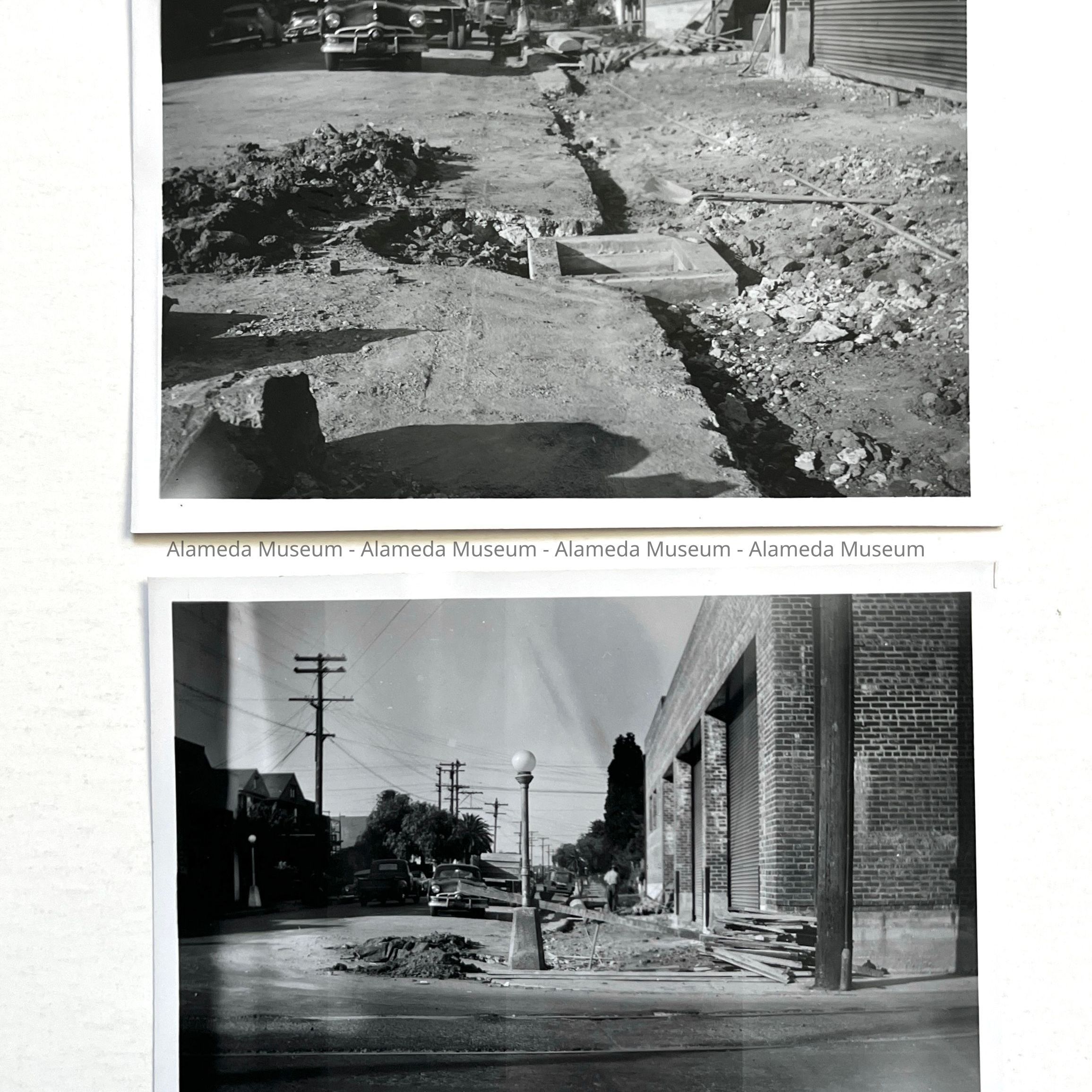 History of Object: Sidewalk construction, southeast corner Everett Street and Blanding Way.