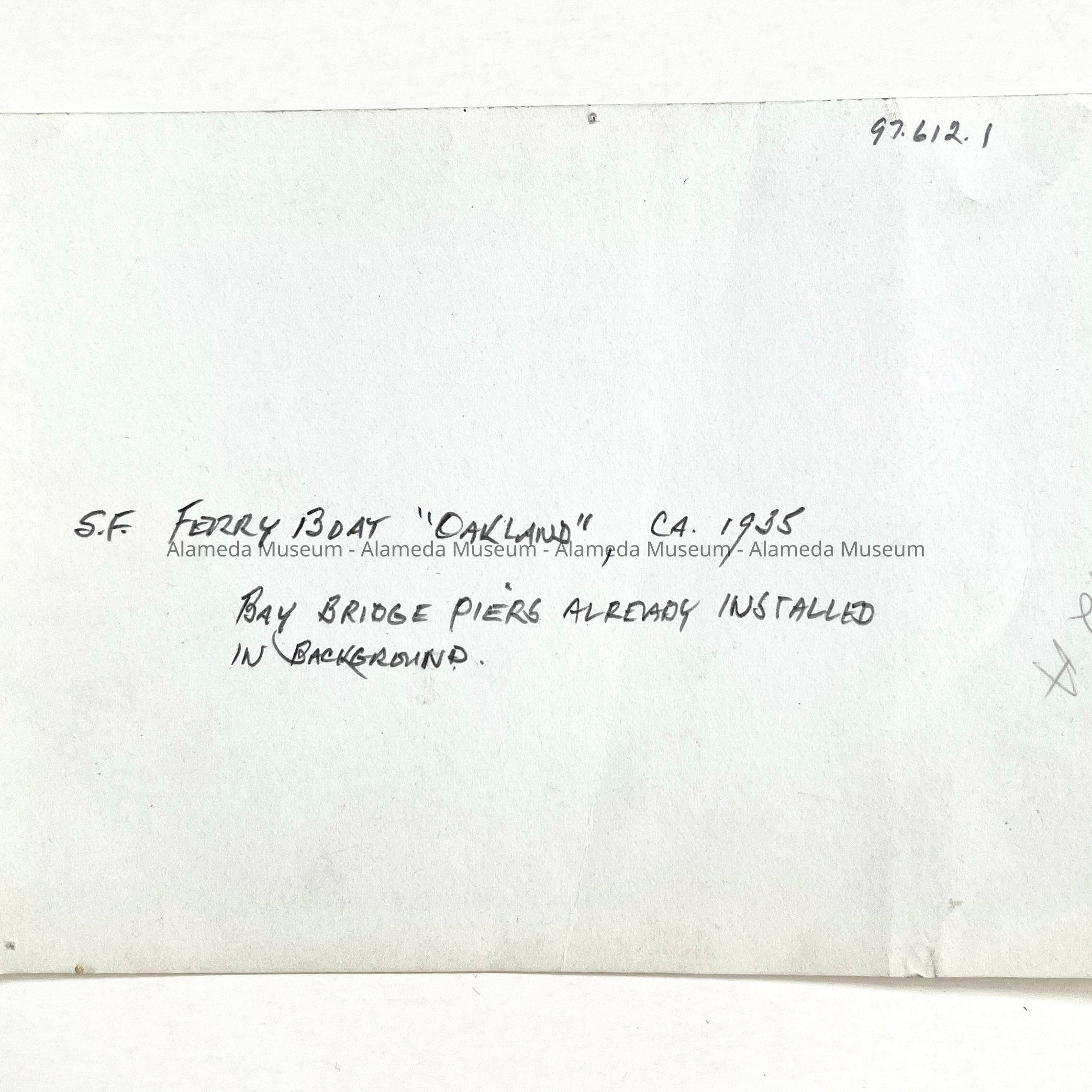 Photo of Southern Pacific ferry 'Oakland' crossing toward Alameda, 1935Entry/Object ID