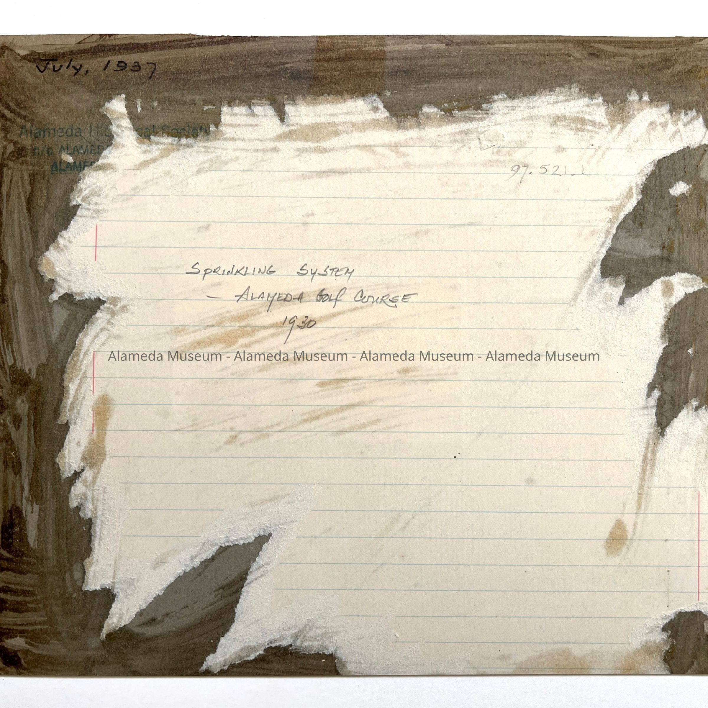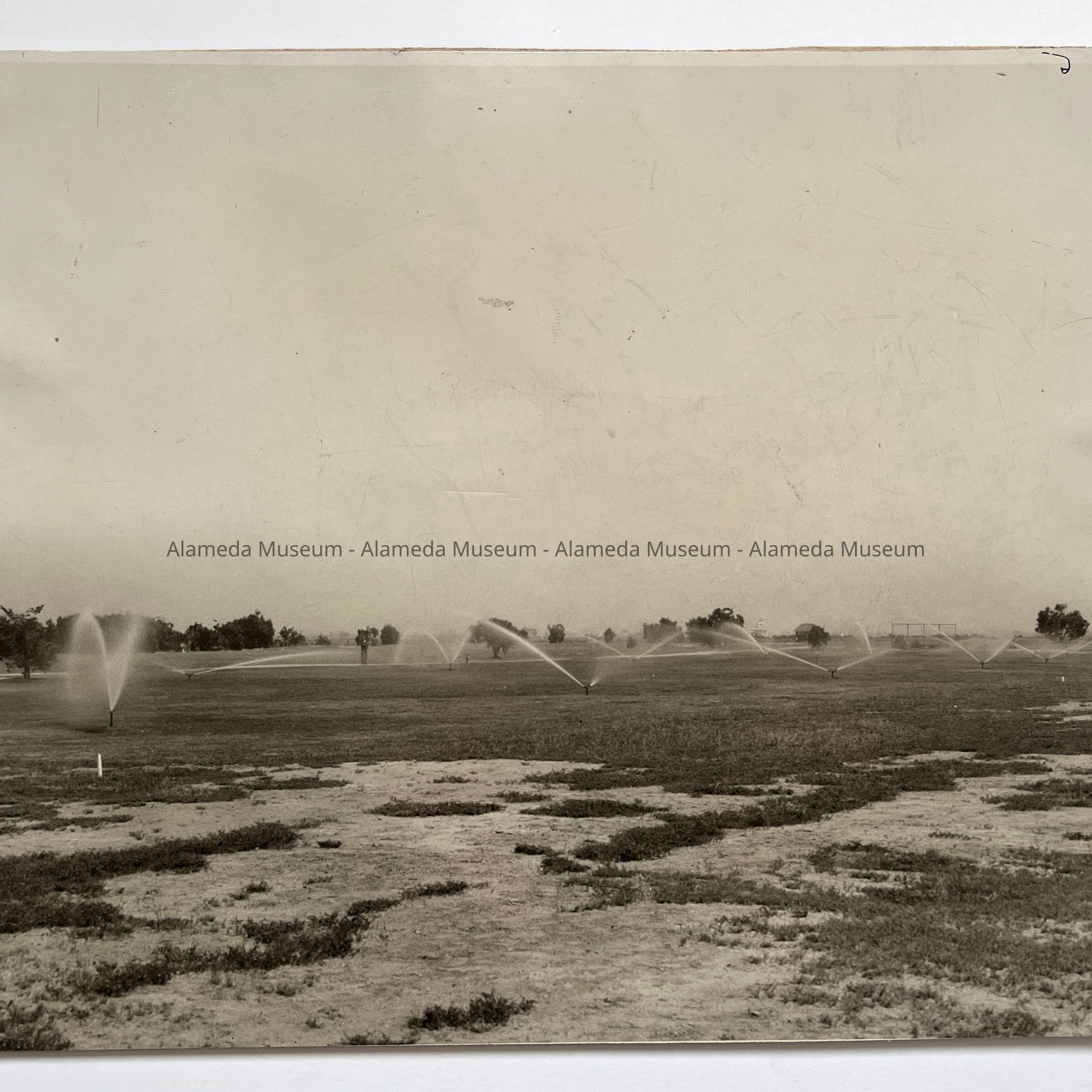 History of Object: The sprinkling system in operation at the Alameda Municipal Golf Course.