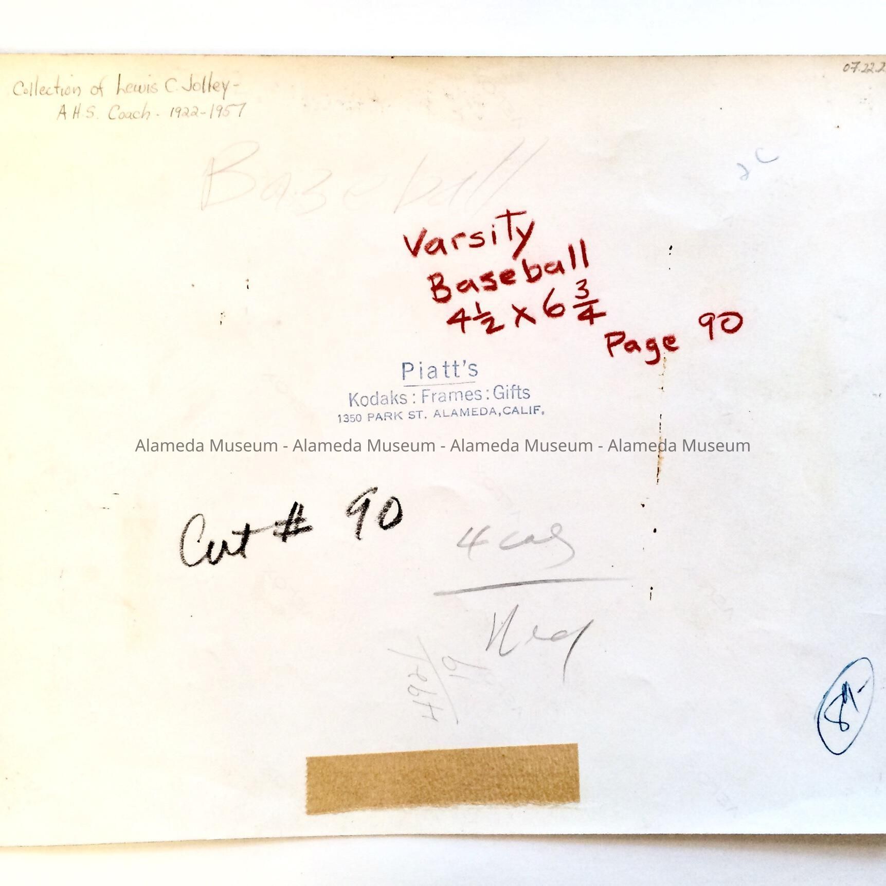 Photo of the Alameda High School Varsity Baseball Team, by Piatt's, c. 1930sEntry/Object ID