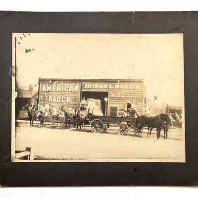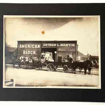 Photo of the Arhtur L. Martin fuel & feed warehouse, with horses and wagonsEntry/Object ID