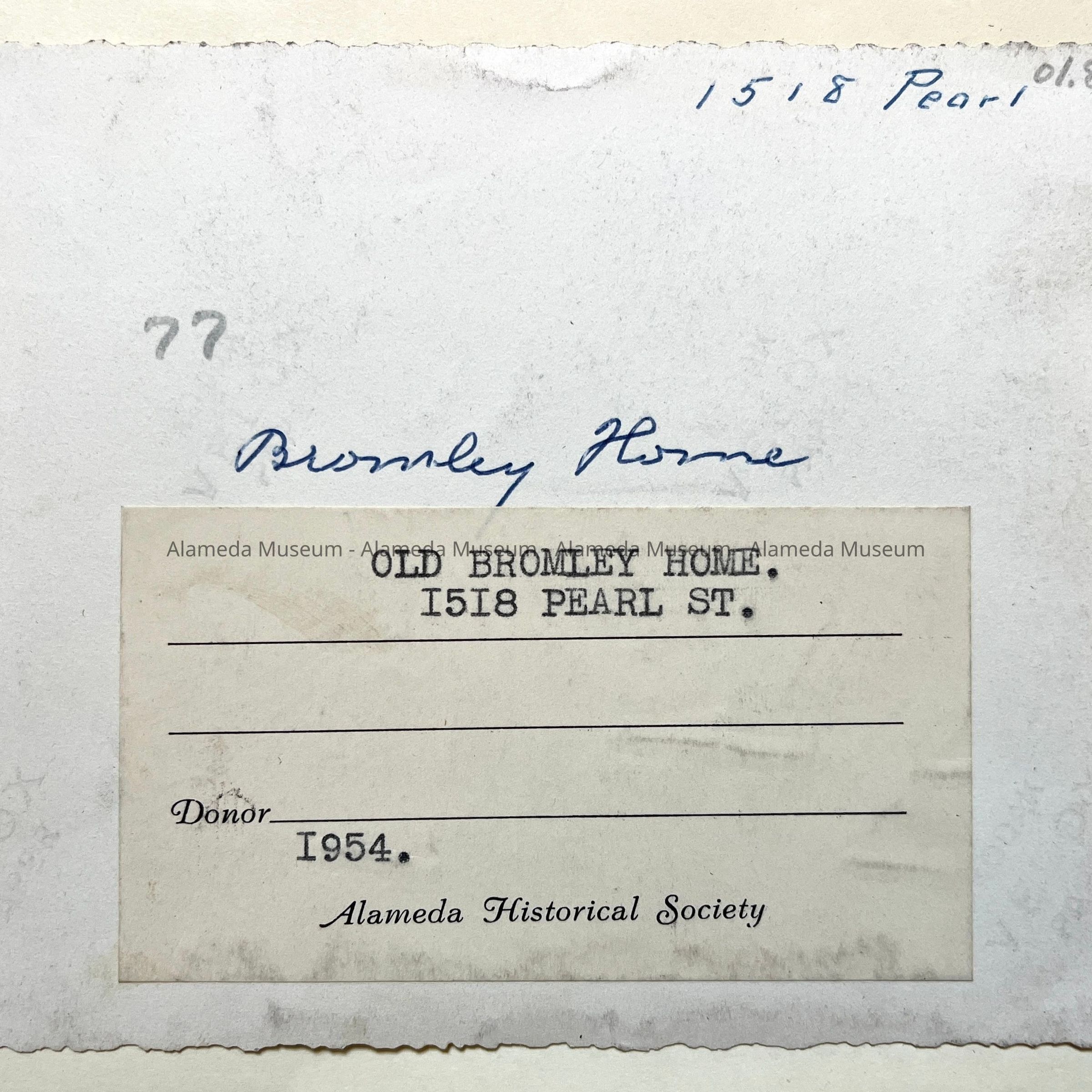 Affixed label states: 'Old Bromley Home. 1518 Pearl St.'