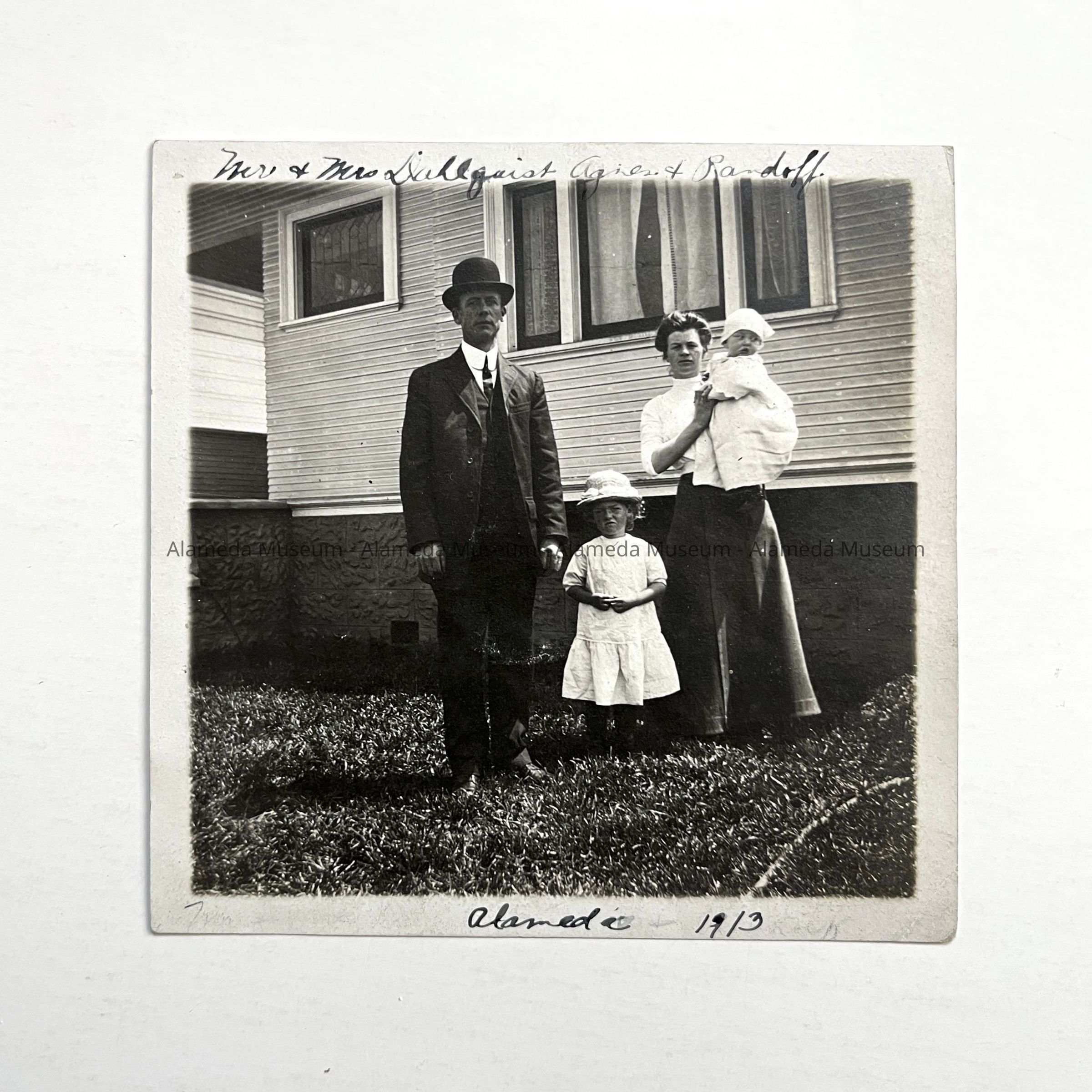 HISTORY OF OBJECT: A PHOTOGRAPH OF MR. AND MRS. DAHLQUIST AND CHILDREN, AGNES AND RANDALL. TAKEN ON THE WEST END OF ALAMEDA IN 1913.