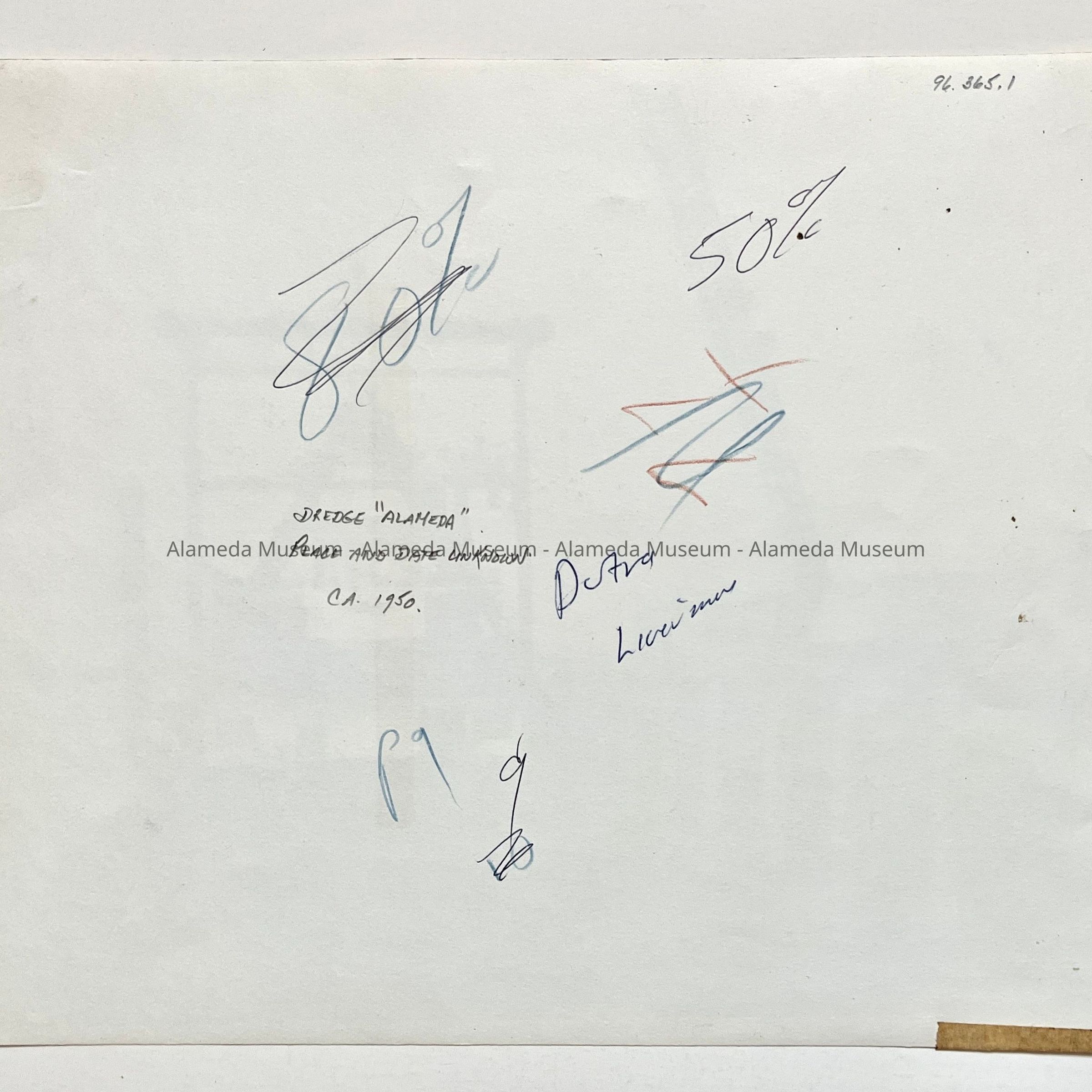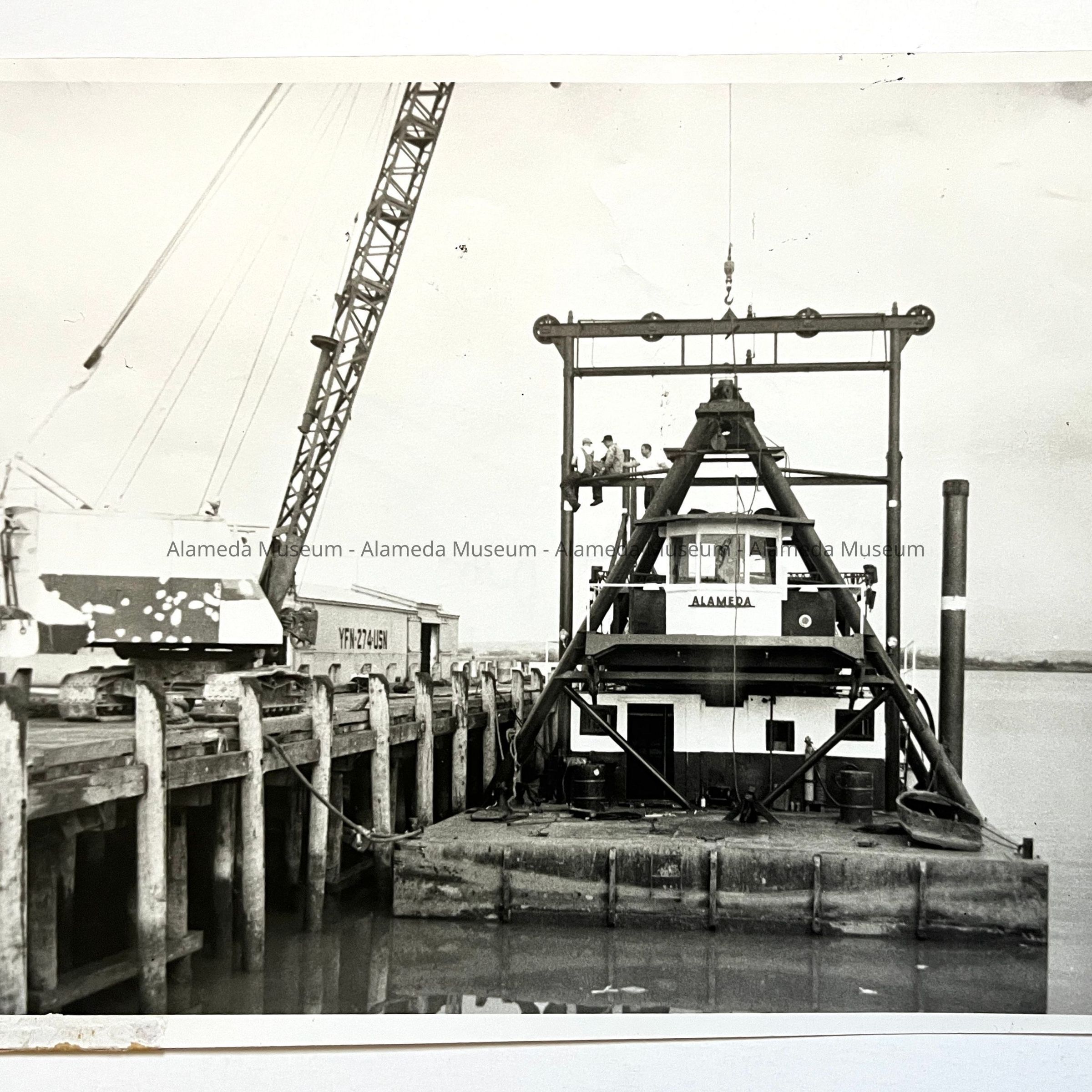 Photo of the dredge 'Alameda' docked at a pier, 1950Entry/Object ID