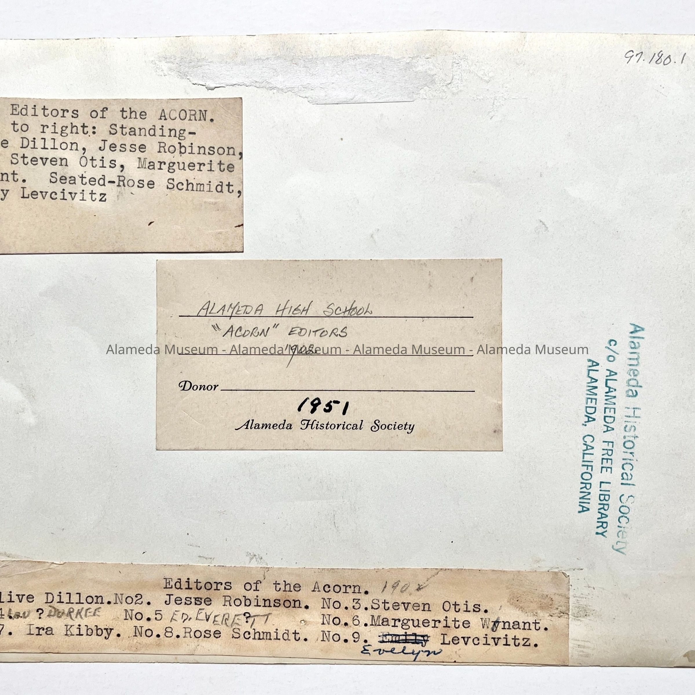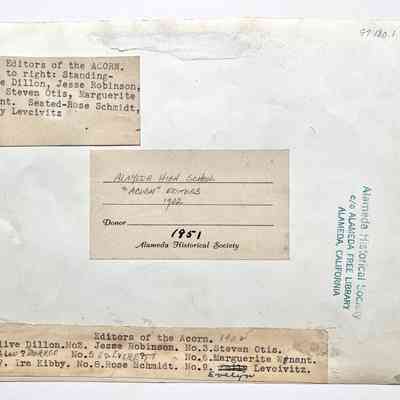 History of Object: Editors of the A.H.S. yearbook, the "Acorn". There are two identifying lists attached to the verso, with some discrepancies between them.