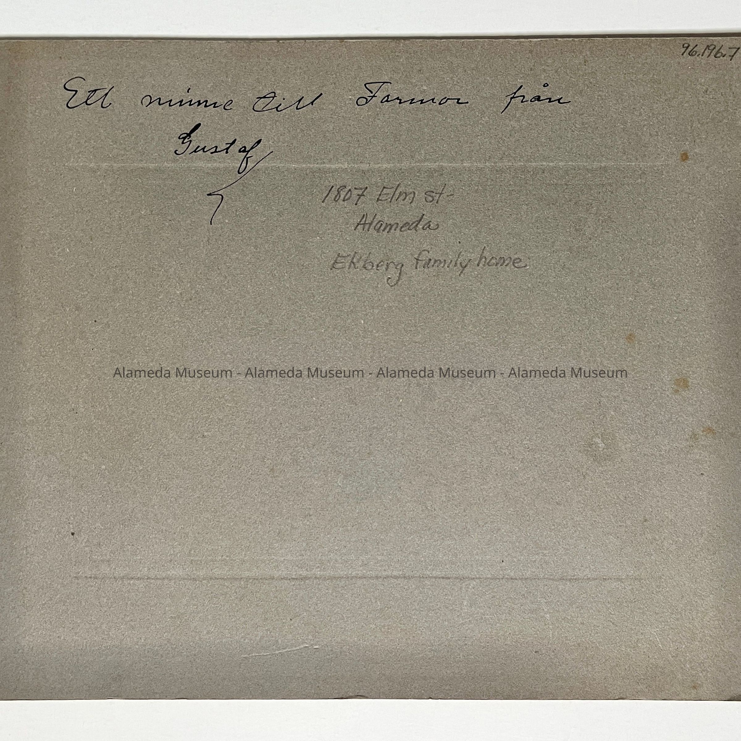PHOTOGRAPH OF THE EKBERG FAMILY HOME AT 1807 ELM STREET, ALAMEDA, CALIFORNIA.