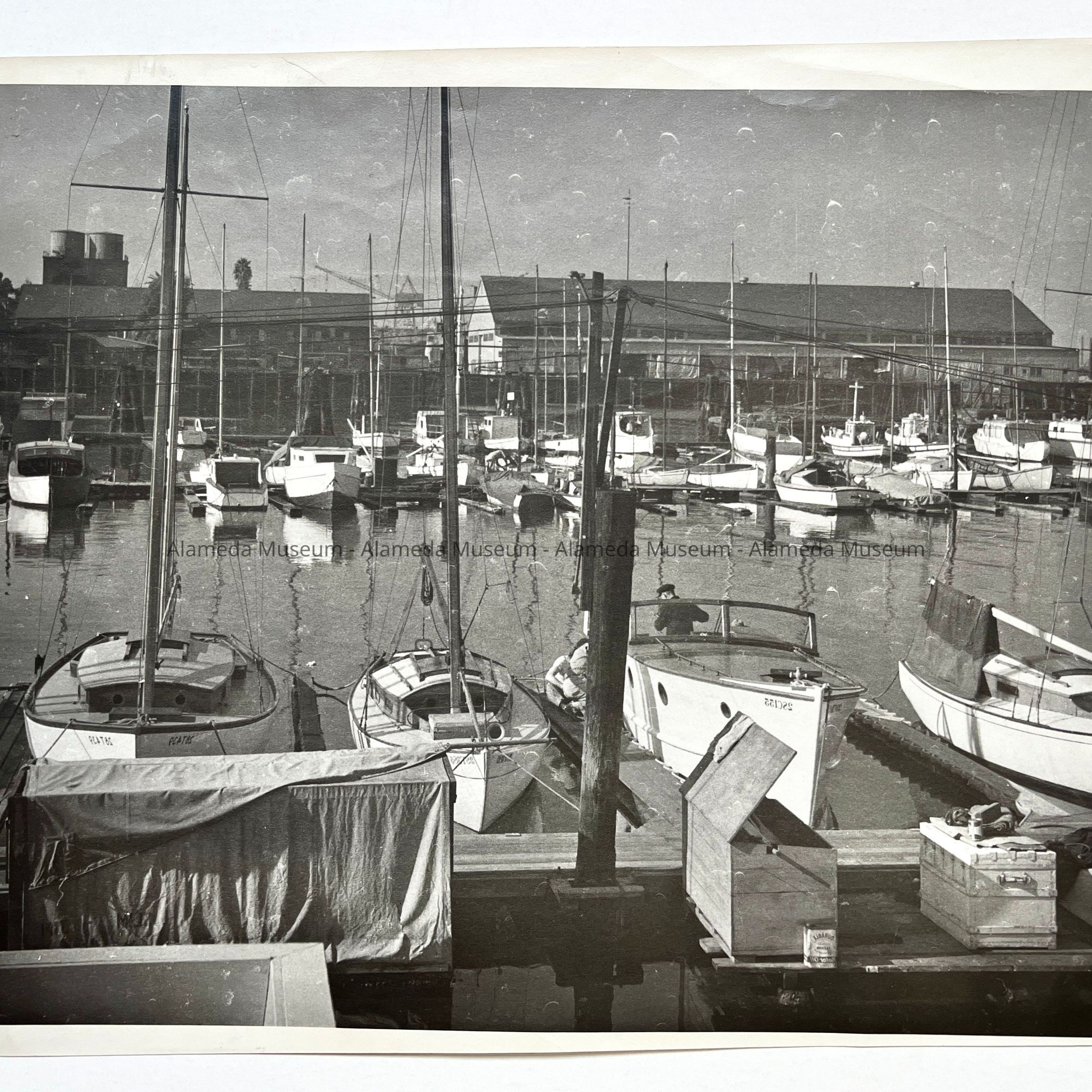 Photo of the Encinal Yacht Club harbor on the Estuary, c. 1950sEntry/Object ID
