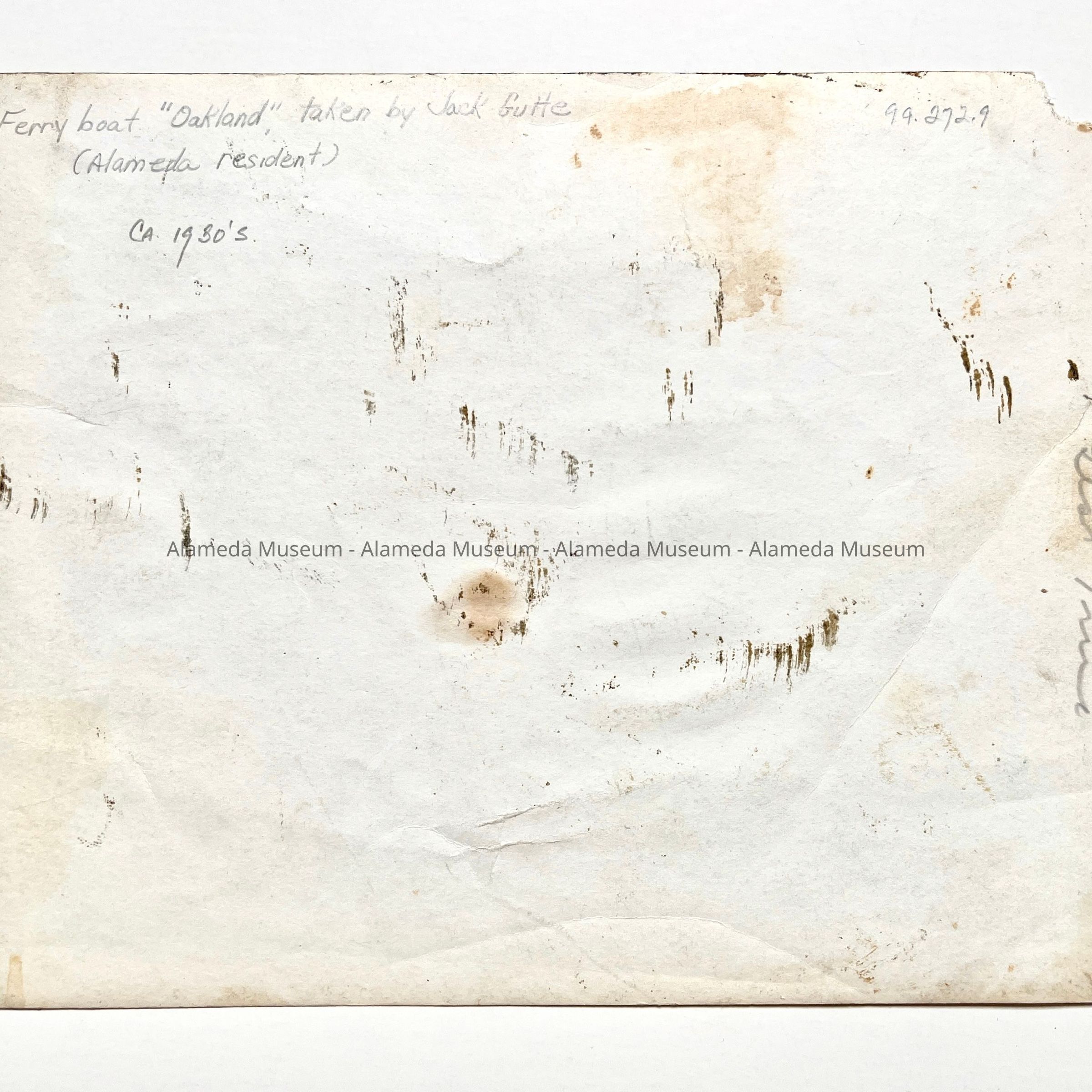 History of Object: Ferryboat "Oakland" crossing the Bay from San Francisco.
