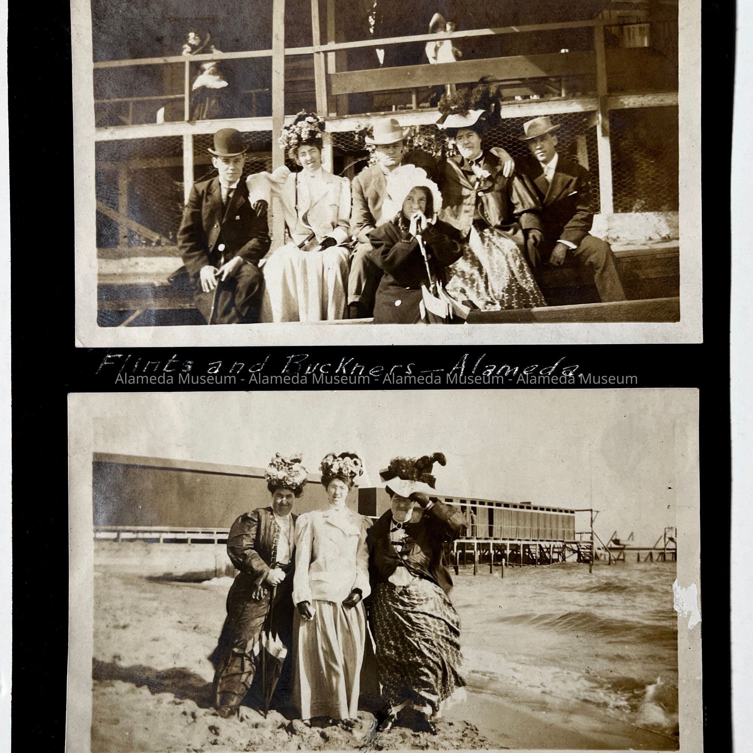 PHOTOGRAPH OF THE FLINTS AND BUCKNER FAMILIES AT AN UNIDENTIFIED ALAMEDA BEACH, ALAMEDA, CALIFORNIA.
