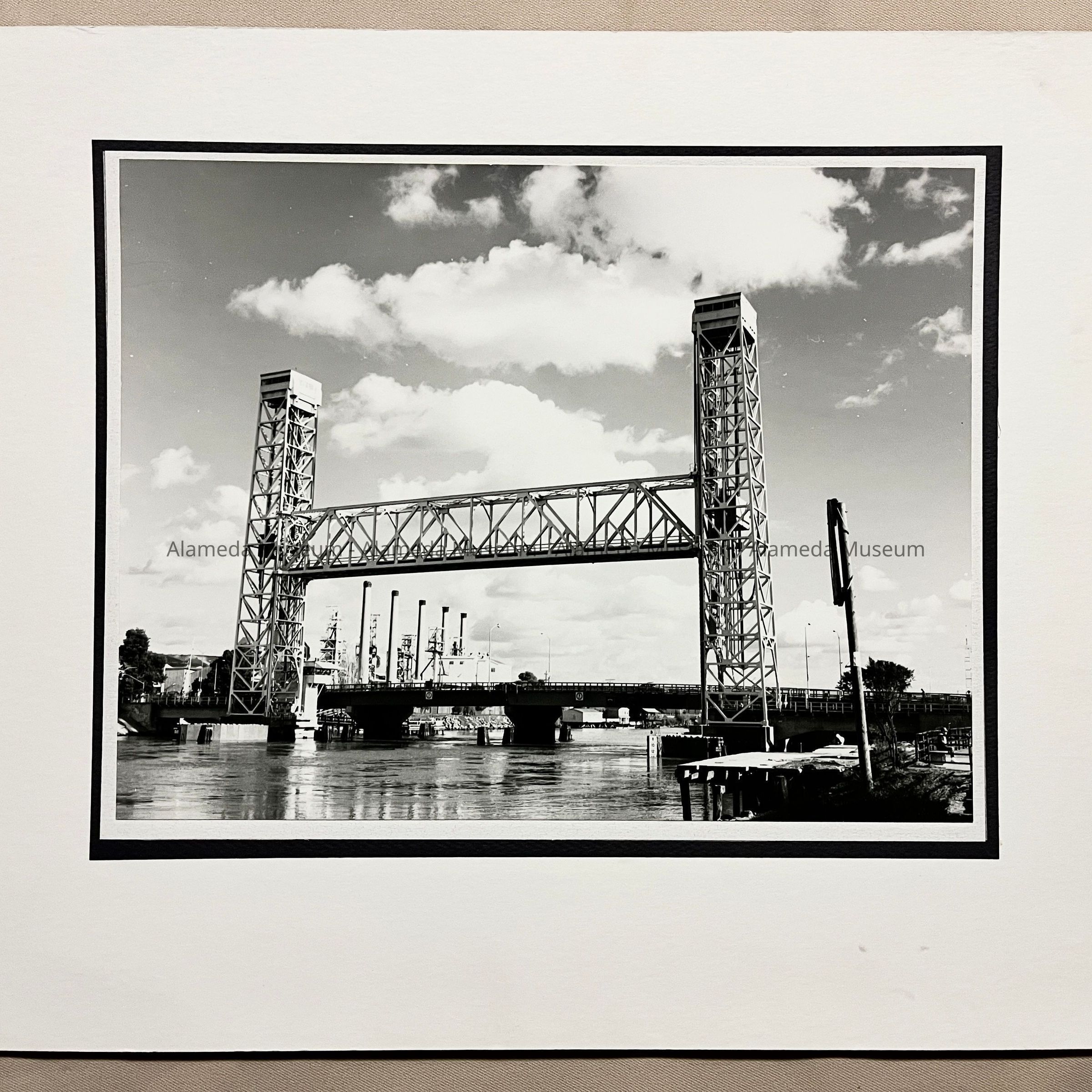 Description: Glossy black/white photo mounted on white paperboard with underlying layers of white and black paper to frame the image. Photographer: Henry McLain, Alameda.