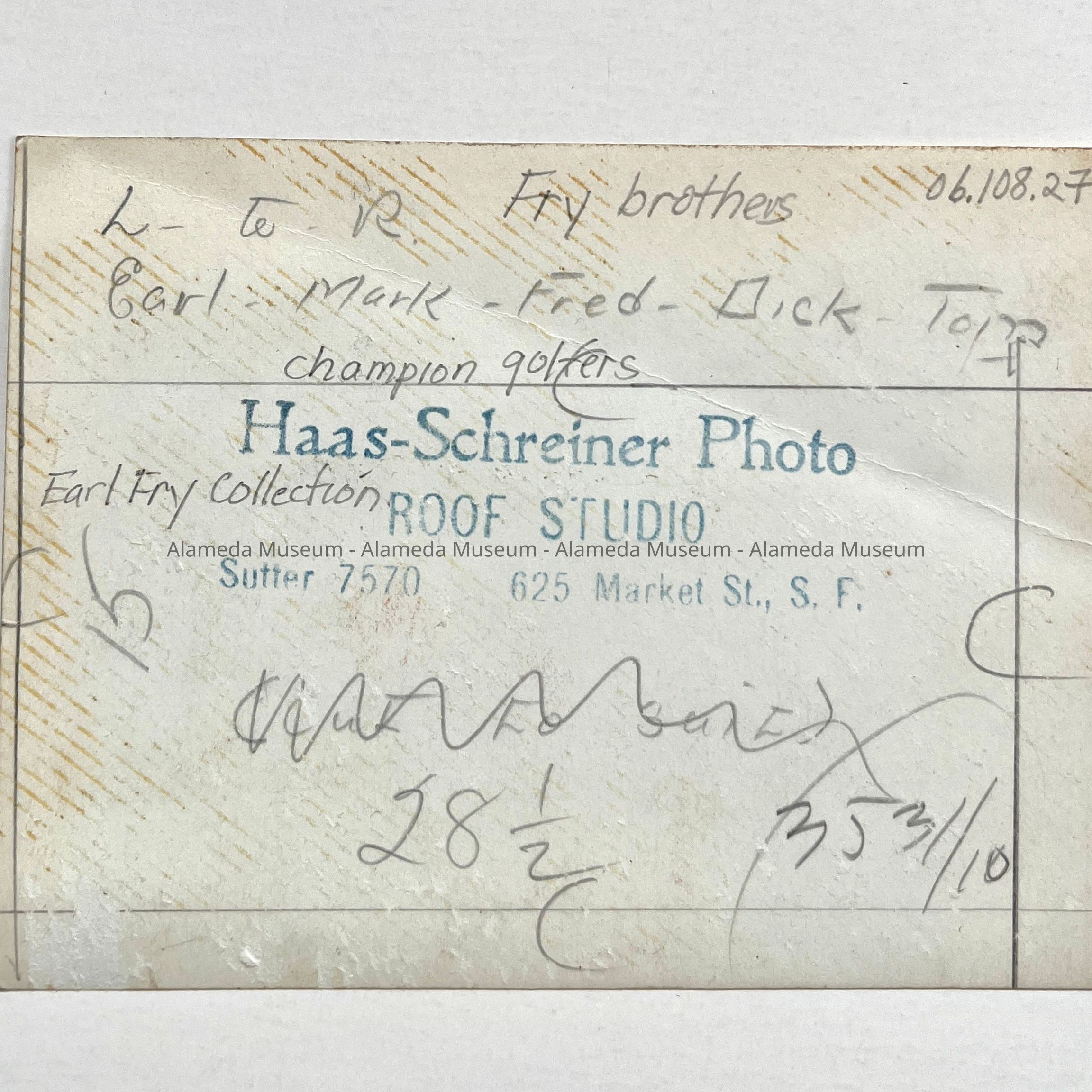 A PHOTOGRAPH OF THE FRY BROTHERS, LEFT TO RIGHT: EARL, MARK, FRED, DICK, TOM. ALL FRY MEMBERS WERE CHAMPION GOLFERS.