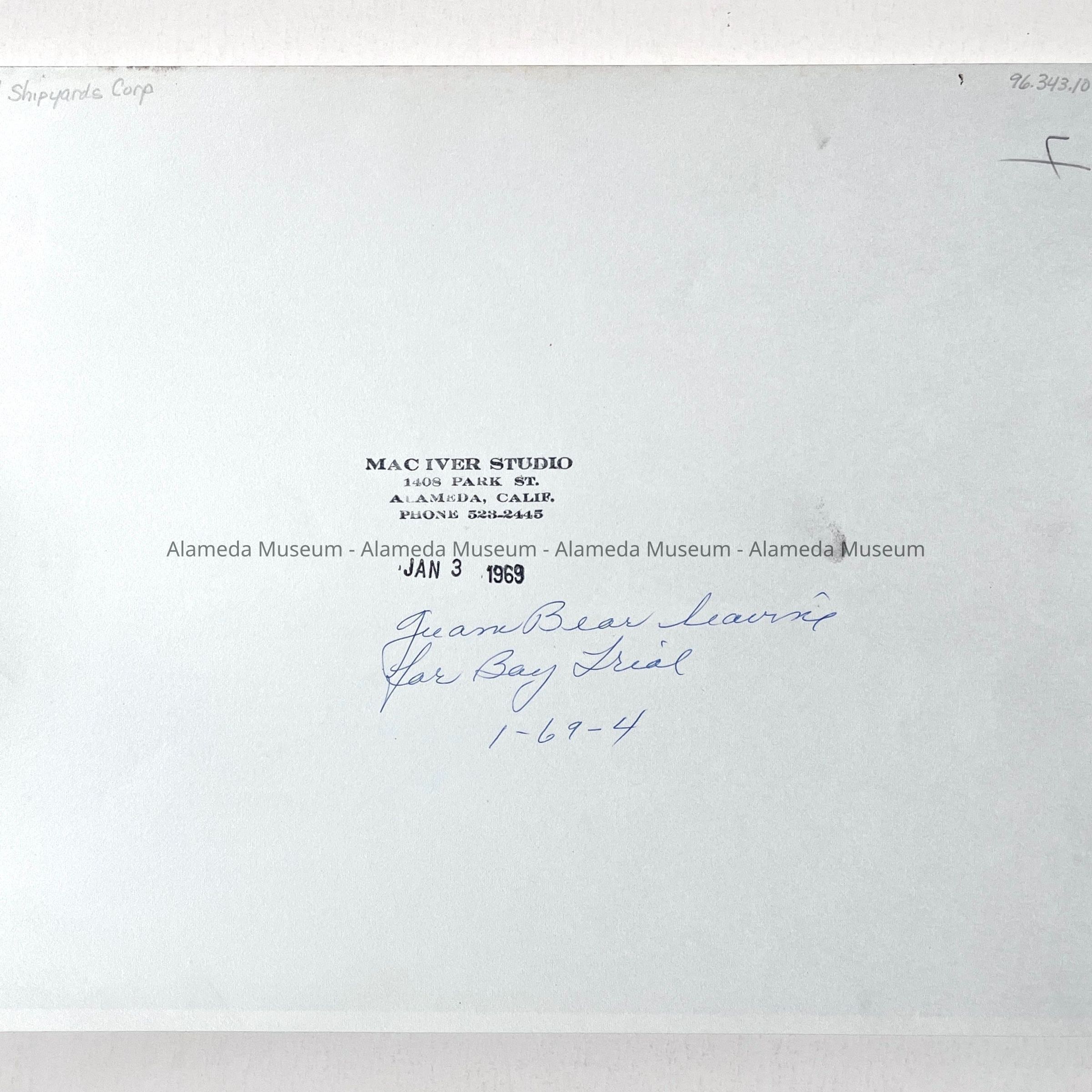 Photo of the 'Guam Bear' leaving for a Bay trial, by Mac Iver, 1969Entry/Object ID