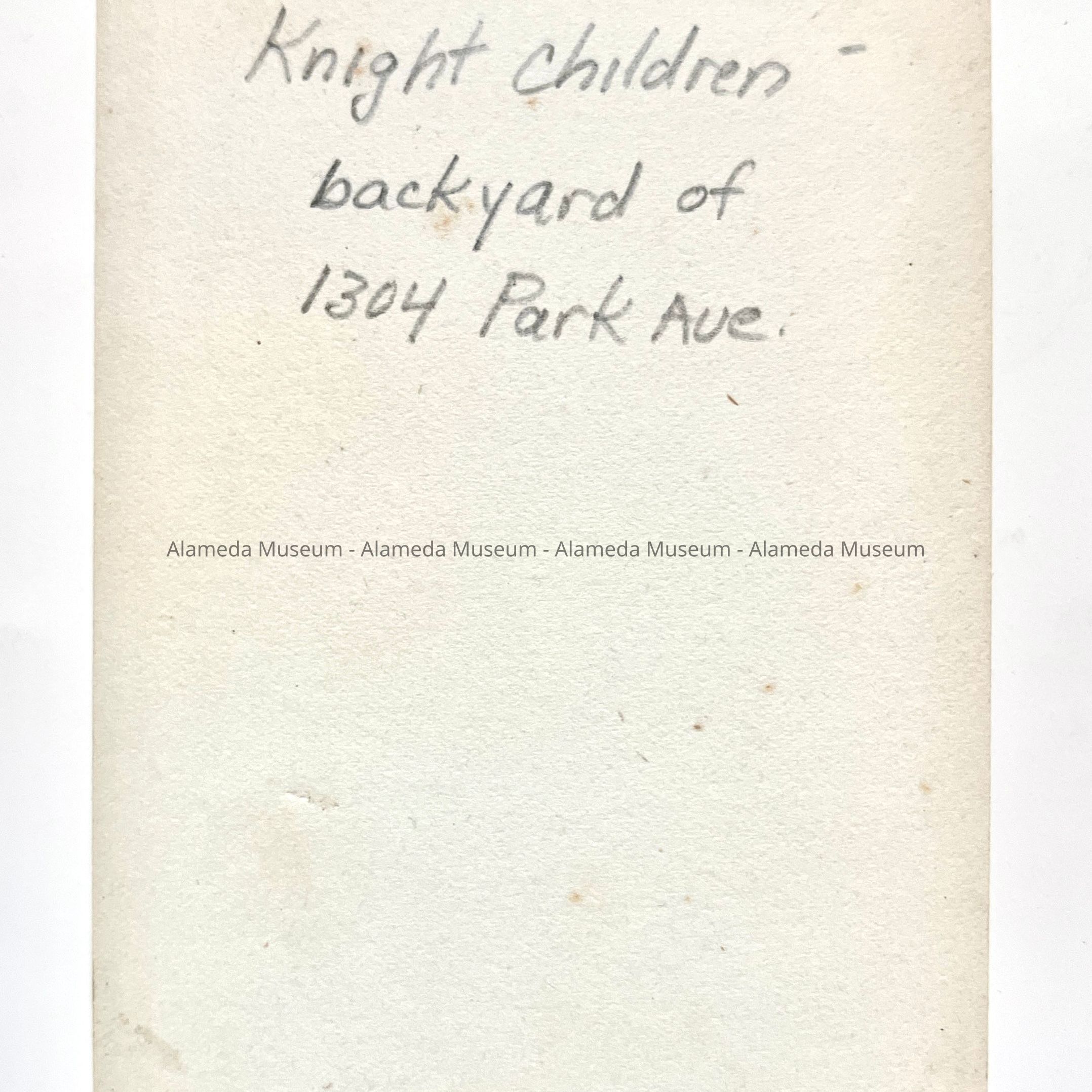 PHOTOGRAPH OF THE KNIGHT CHILDREN IN THE BACKYARD OF THE KNIGHT FAMILY RESIDENCE AT 1304 PARK AVENUE, ALAMEDA, CALIFORNIA.