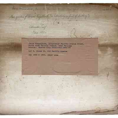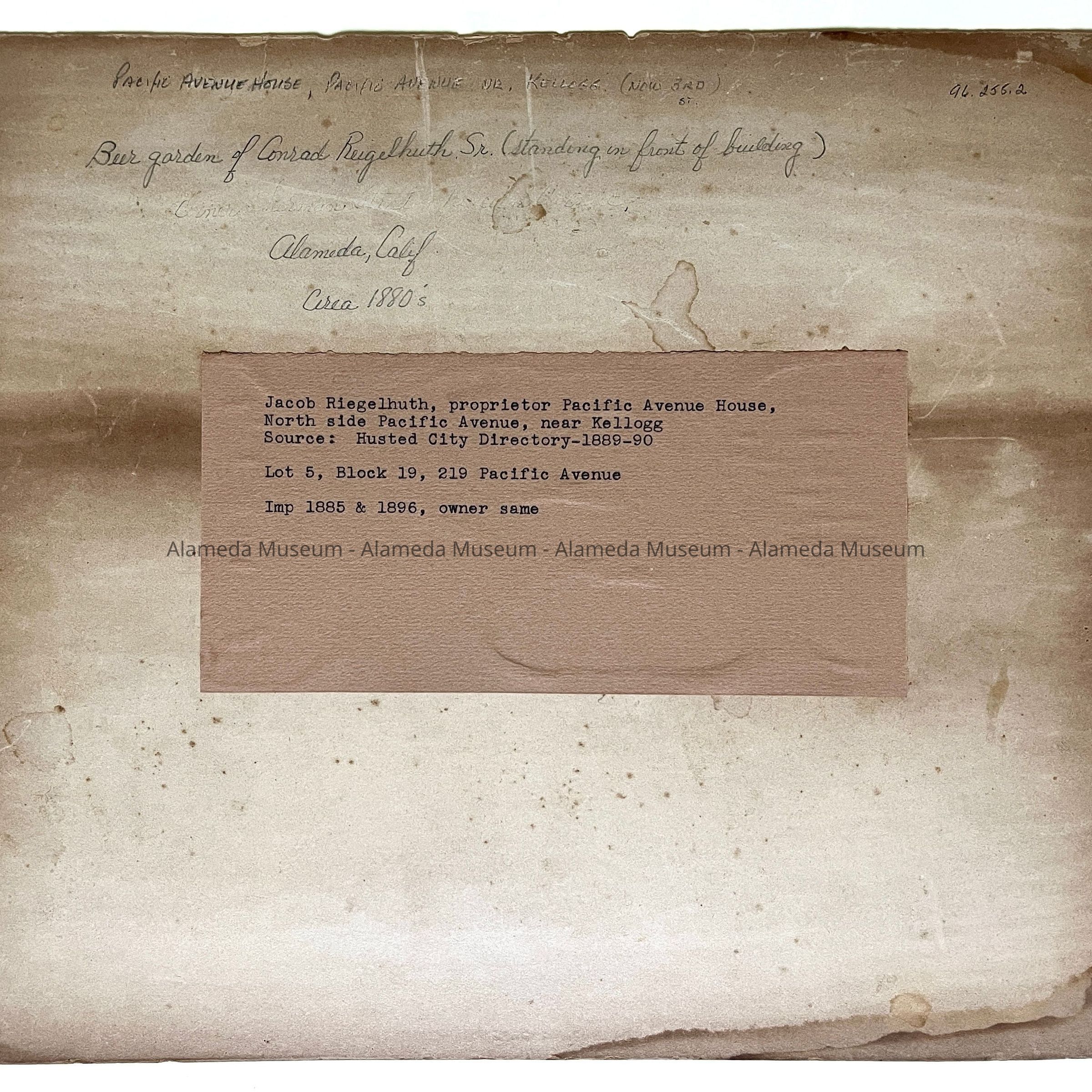 Photo of the Pacific Avenue House, with owner Conrad Riegelhuth and family, c. 1880sEntry/Object ID