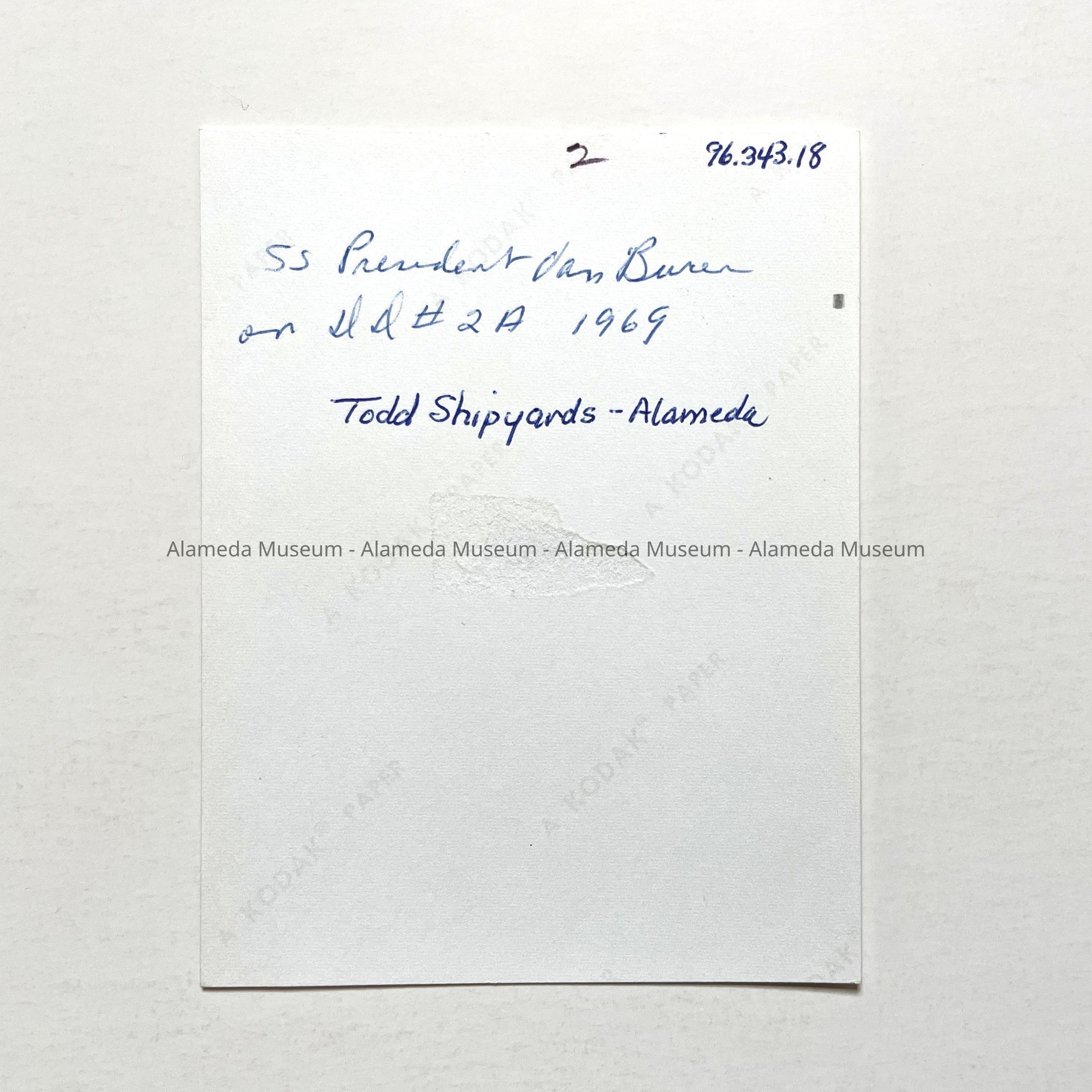 PHOTOGRAPH DEPICTING THE VESSEL, "PRESIDENT VAN BUREN," AT TODD SHIPYARDS CORPORATION, OAKLAND-ALAMEDA ESTUARY, ALAMEDA, CALIFORNIA, 1969.