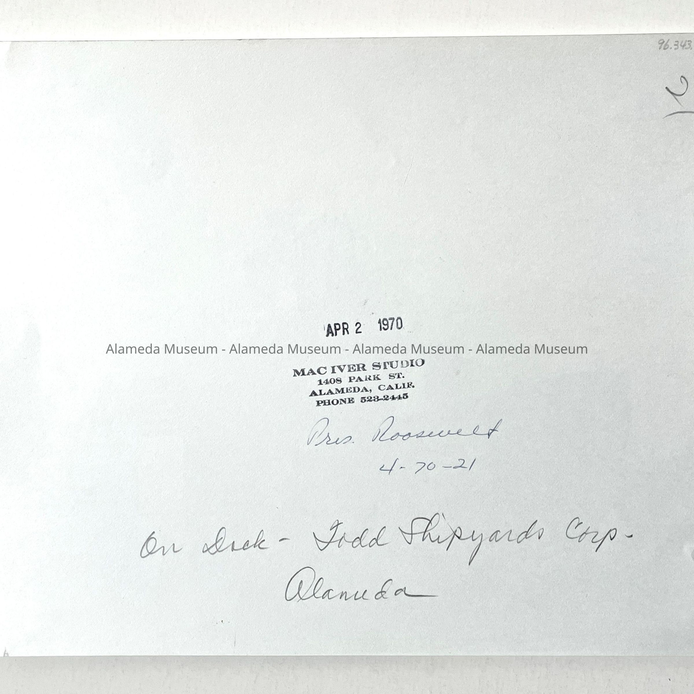 PHOTOGRAPH OF THE "SS PRESIDENT ROOSEVELT," AT TODD SHIPYARDS CORPORATION, OAKLAND-ALAMEDA ESTUARY, ALAMEDA, CA. DATED APRIL 2, 1970