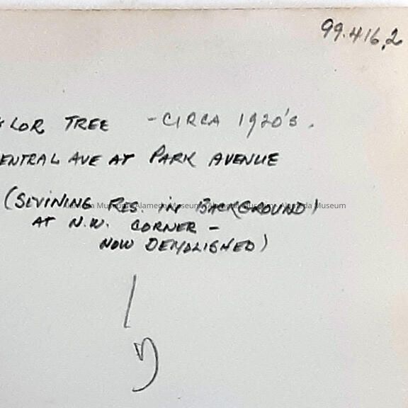 Photo of the 'Taylor Tree' at Central and Par Ave, c. 1920sEntry/Object ID