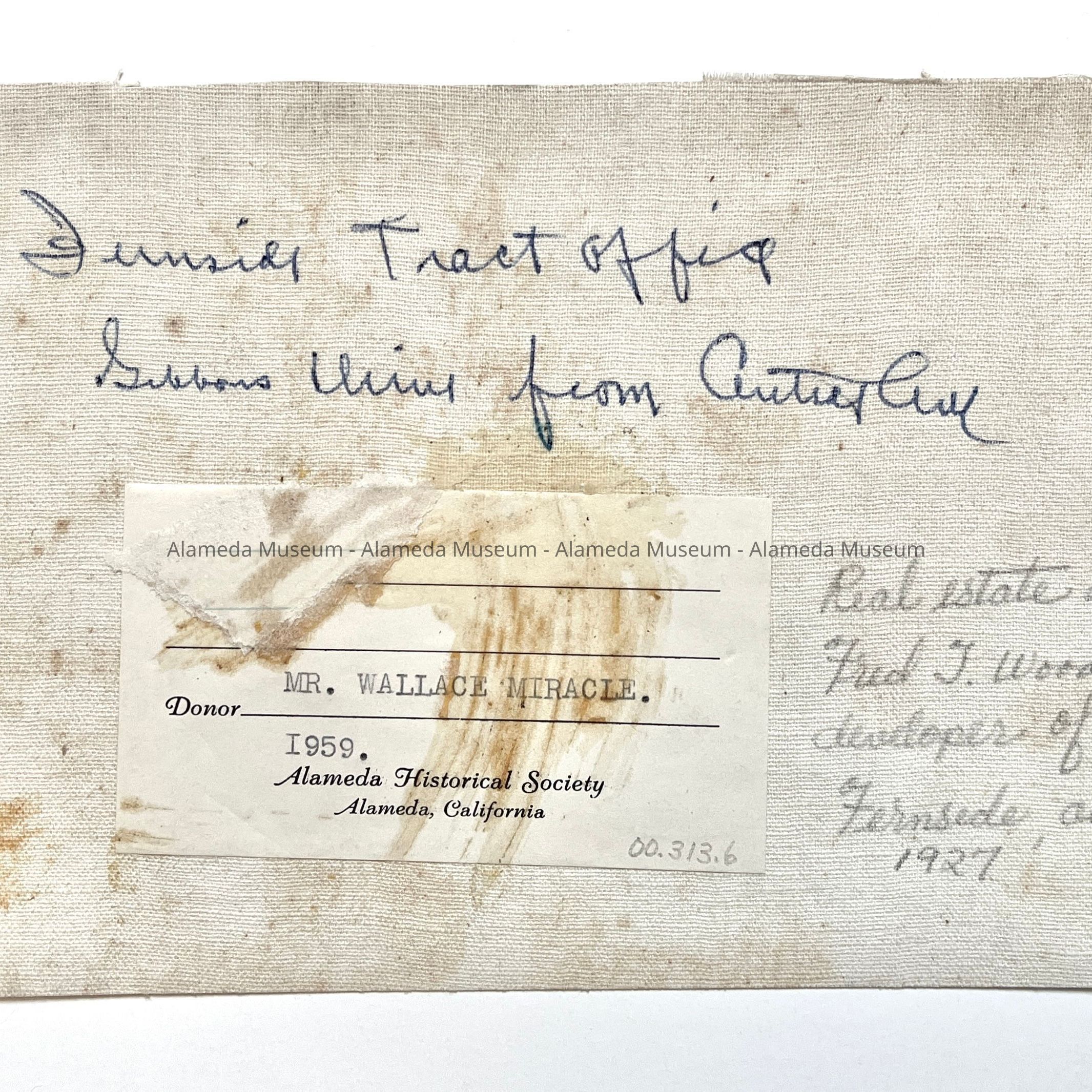 History: Photograph depicting undeveloped property and office building of Fred. T. Wood, Developer of the Fernside District. The office building is now a home, address 2801 Central Ave.