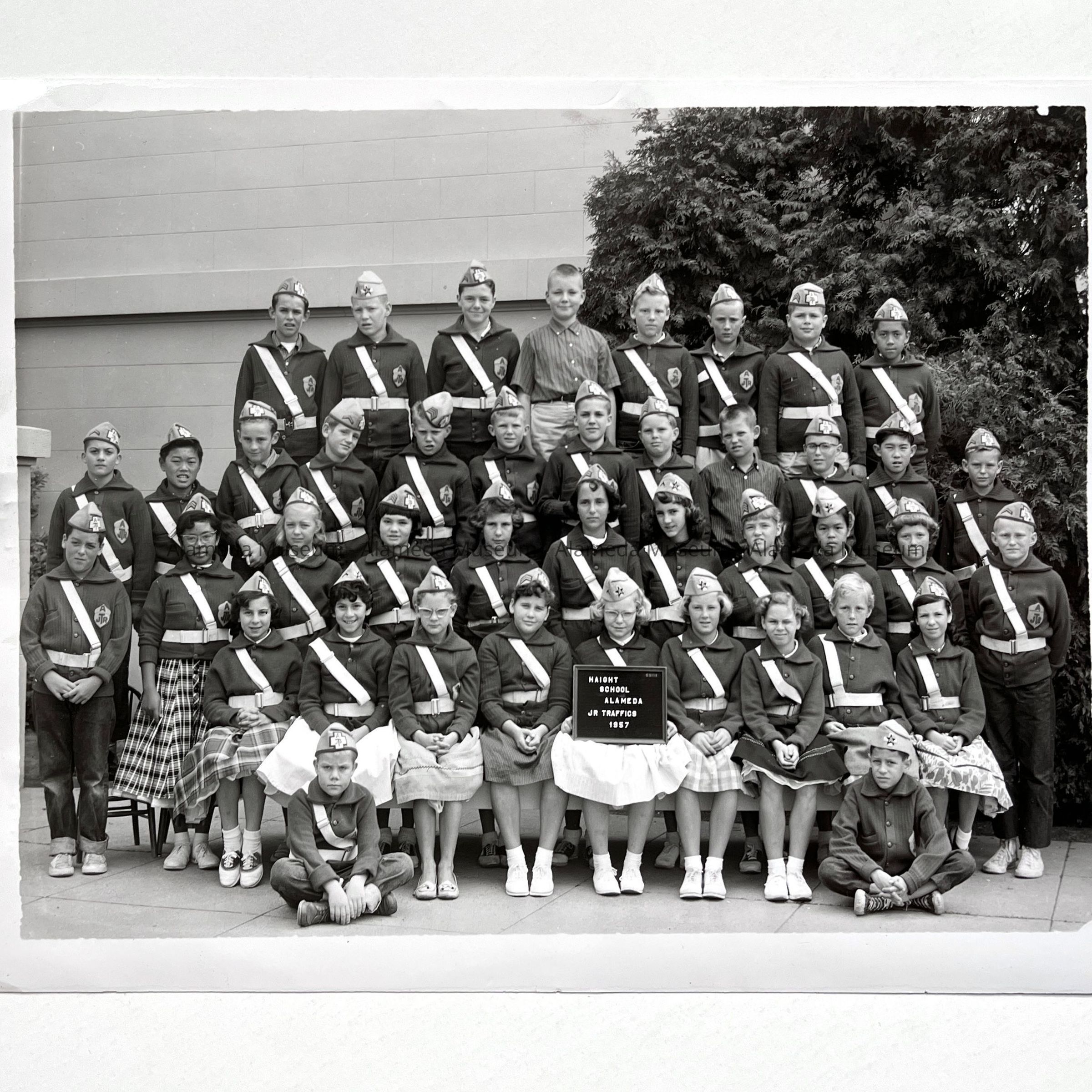 Photo of uniformed Haight School traffic guards, 1957Entry/Object ID