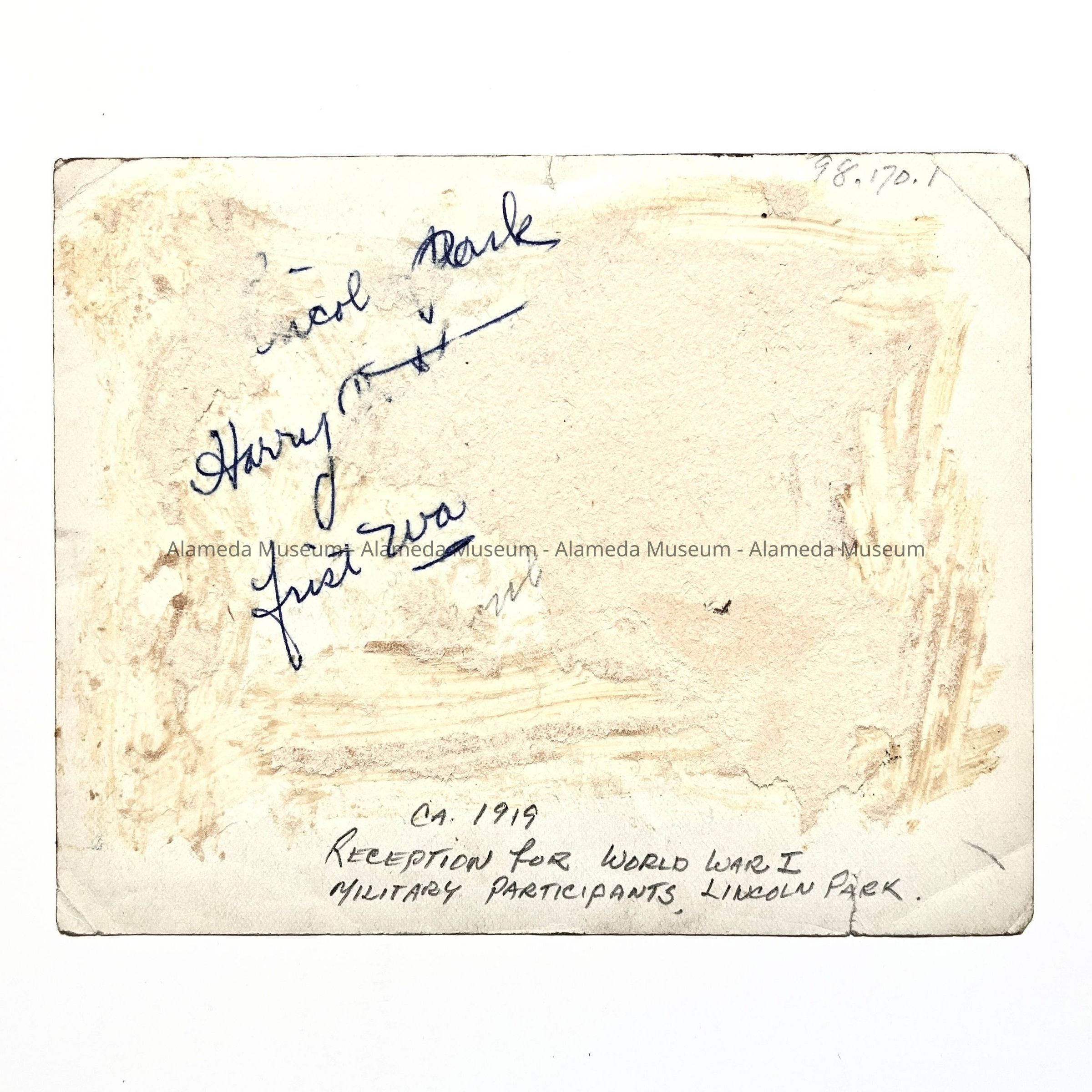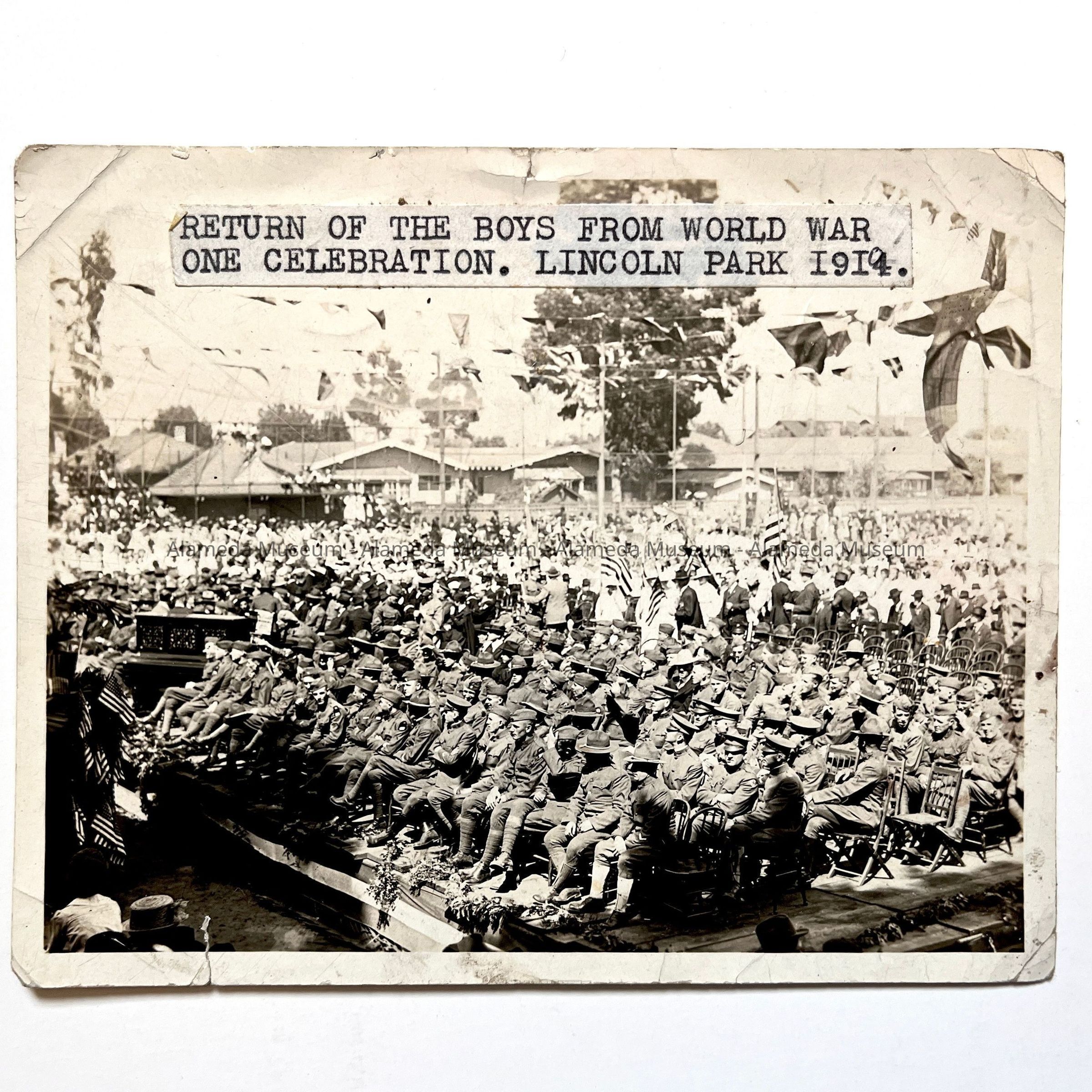 Photo of uniformed military in Lincoln Park, c. 1919Entry/Object ID