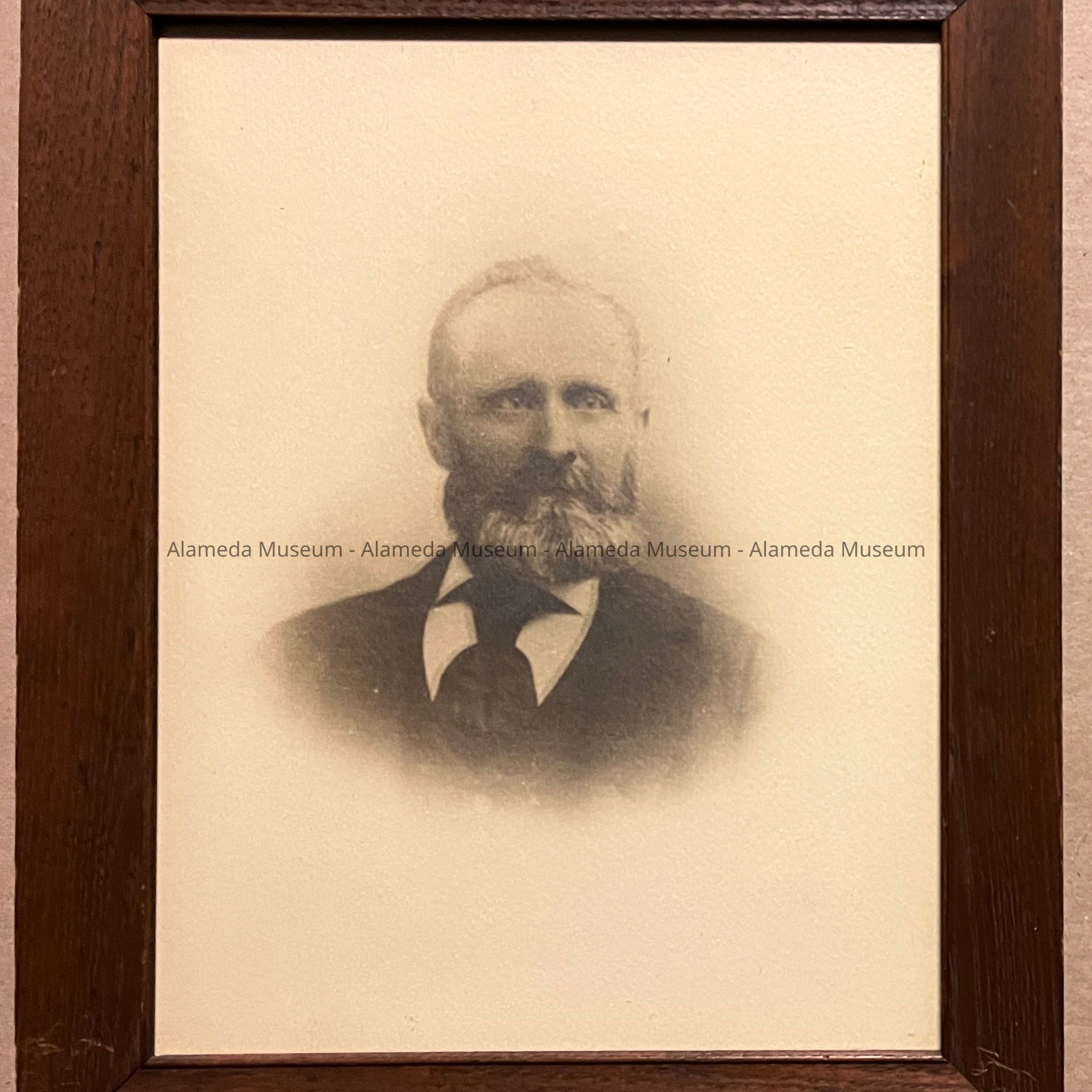 History of Object: Framed photographic portrait of Urban Bird, ordained minister of the Methodist Church, and pioneer resident of Alameda. Bird was born in England, May 27, 1836, he died January 9, 1895 and is buried in Mt. View Cemetery, Oakland, CA. The Urban Bird family settled in Alameda around 1878.
