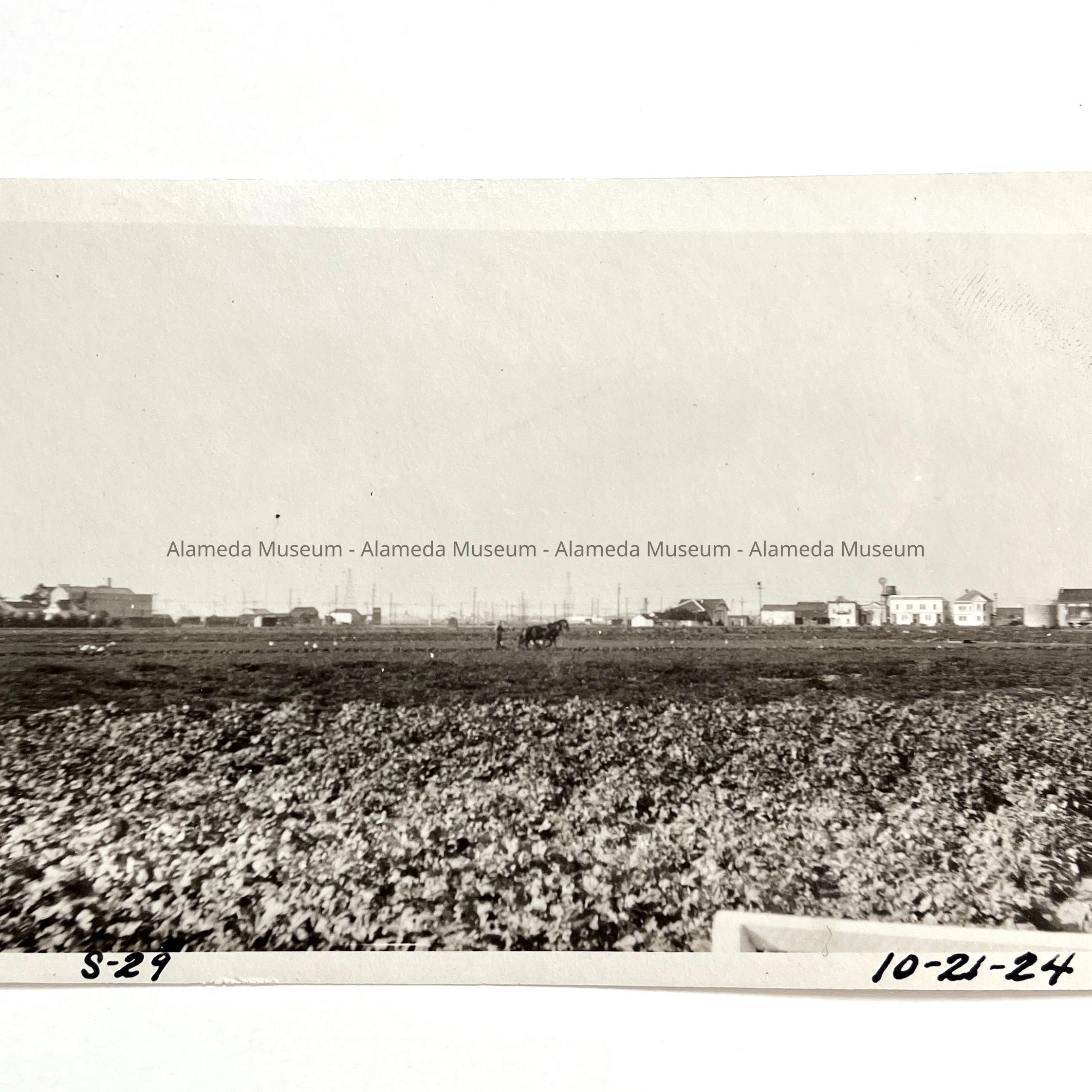 Photo of West End vegetable gardens, with plowing horse 1924Entry/Object ID