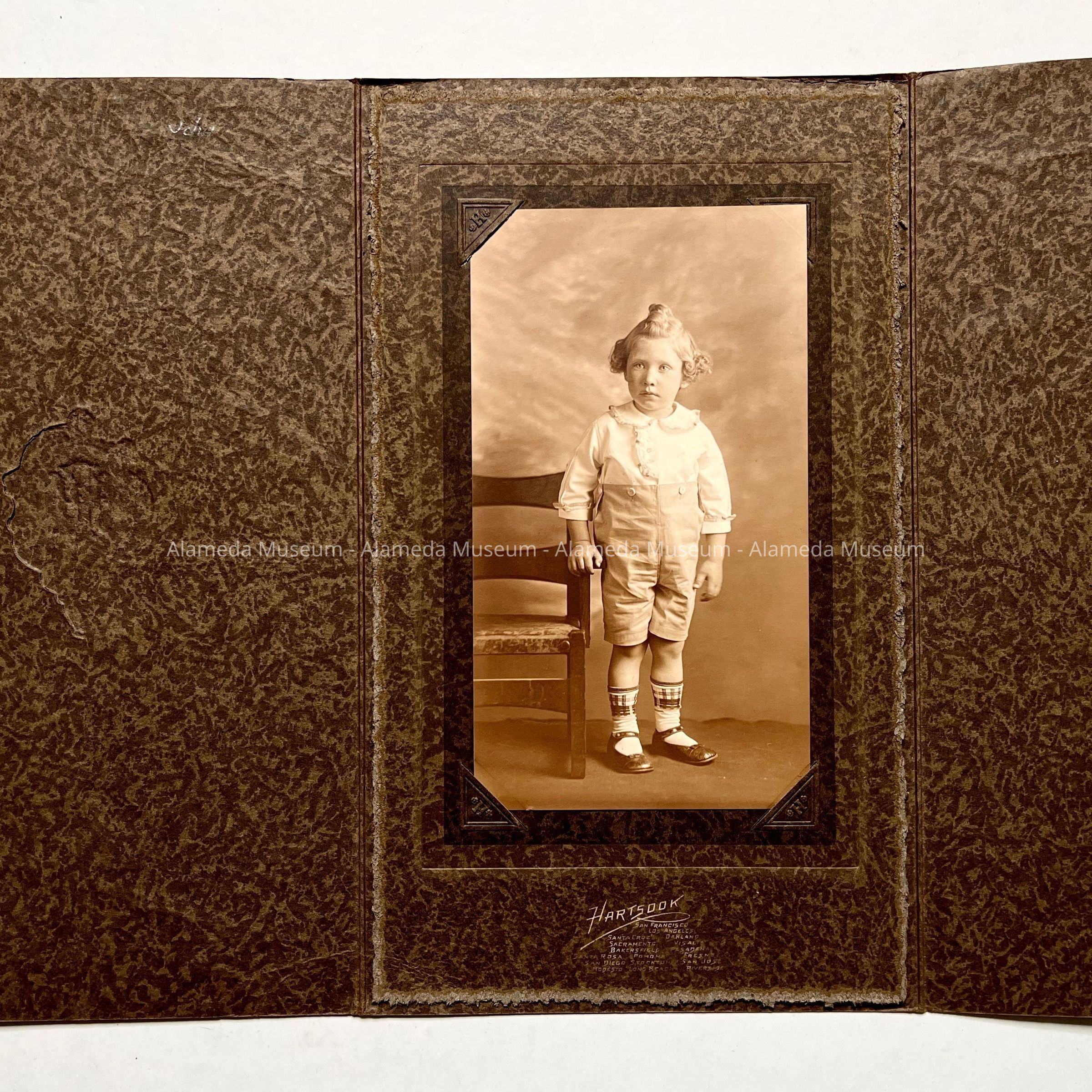 SEPIA- TINTED PHOTOGRAPHIC PORTRAIT IN BROWN-COLORED COVERLET (OR JACKET). JACKET IS SIGNED, "HARTSOOK."